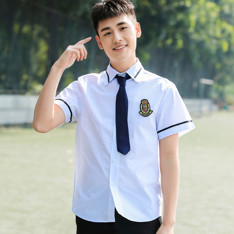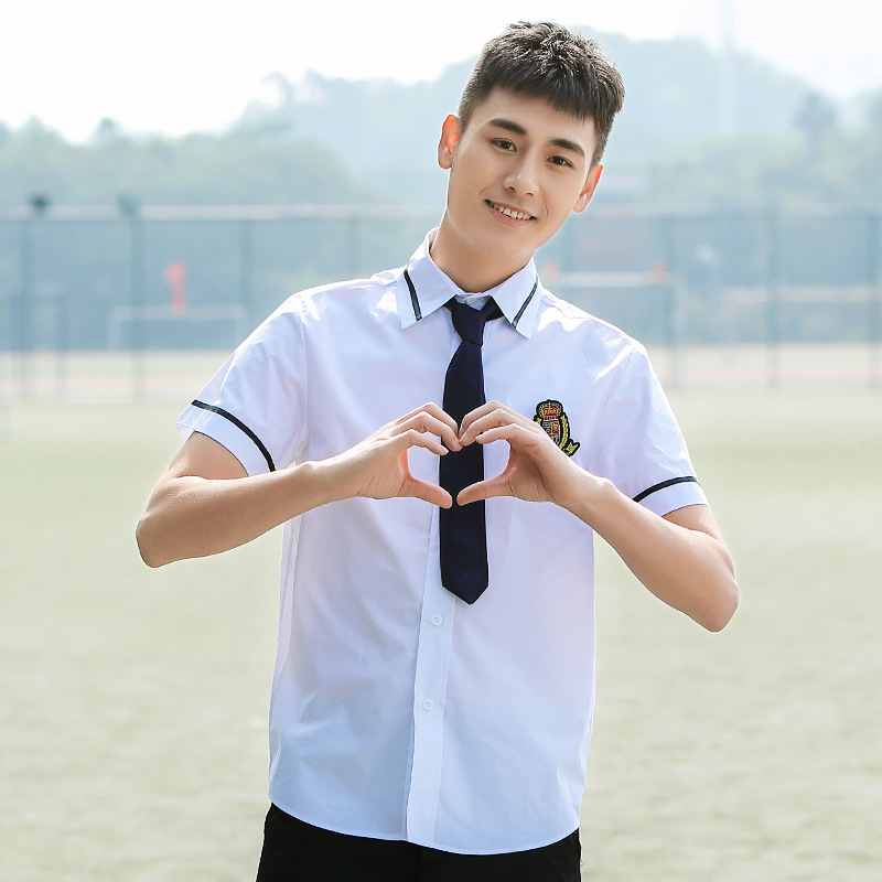 | nameOriginal | Cotton Shirt Men's Short-sleeved Black Edge British College Style School Uniform Chorus Performance Suit JK Uniform Graduation Suit Shirt |