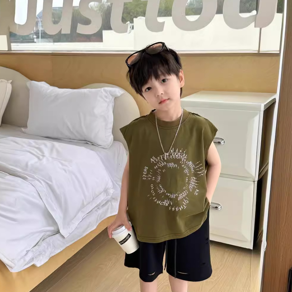 | nameOriginal | Cotton Shop Boys Summer Wear Thin Sleeveless T-shirt Baby 2024 Summer New Korean Style Children Summer T-shirt |