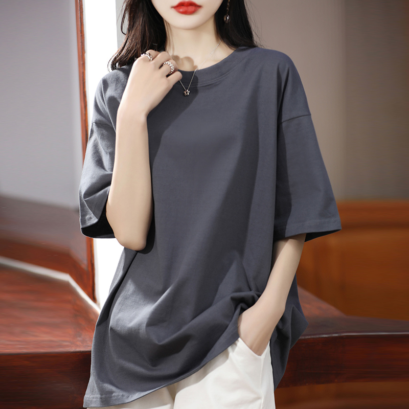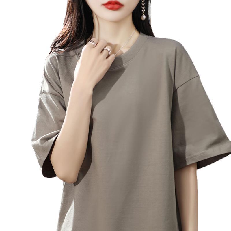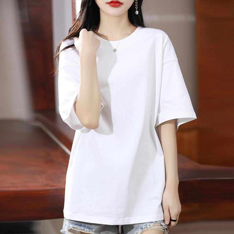 Cotton Short-sleeved T-shirt Women's Round Neck Pullover Casual Shoulder T-shirt Loose Half-sleeved Top Summer 2024 New Style