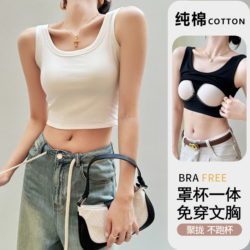 | nameOriginal | Cotton short with chest pad one Cup bottoming small camisole women's inner wear hot girl Summer sexy tube top |