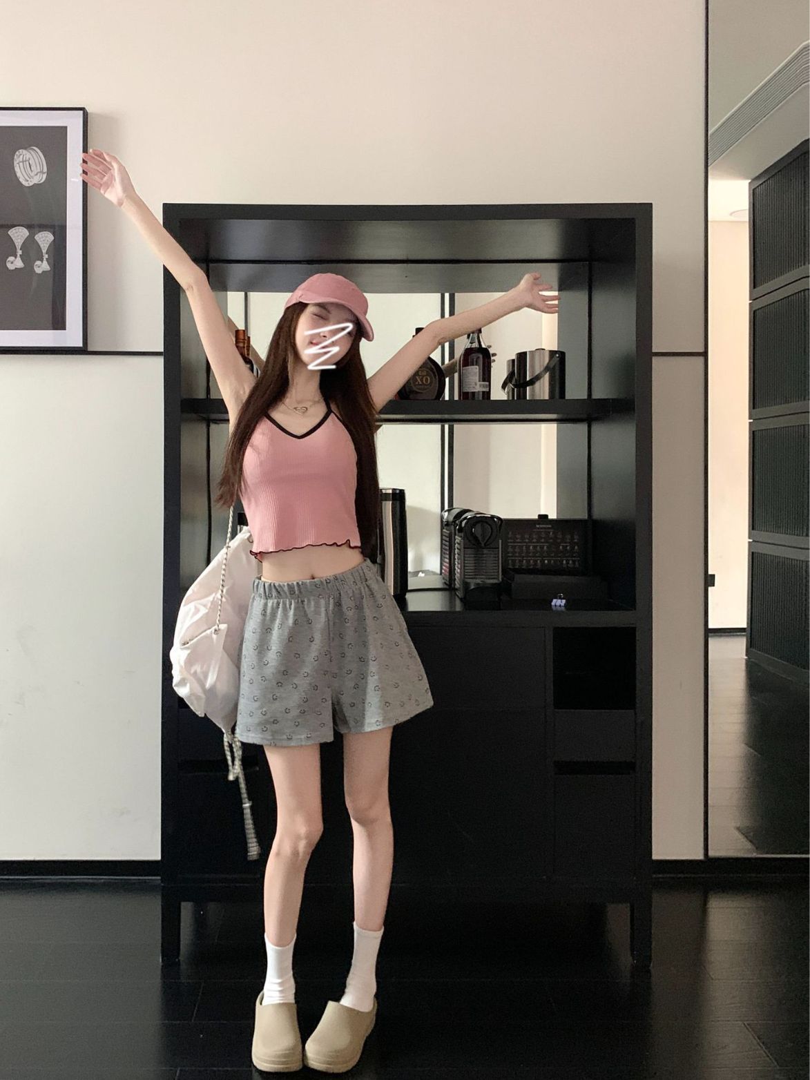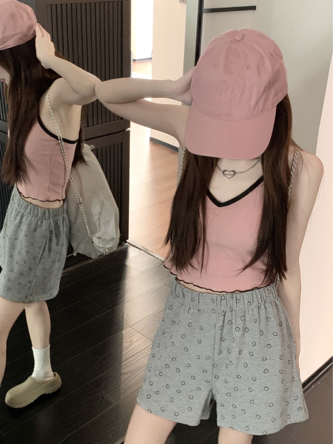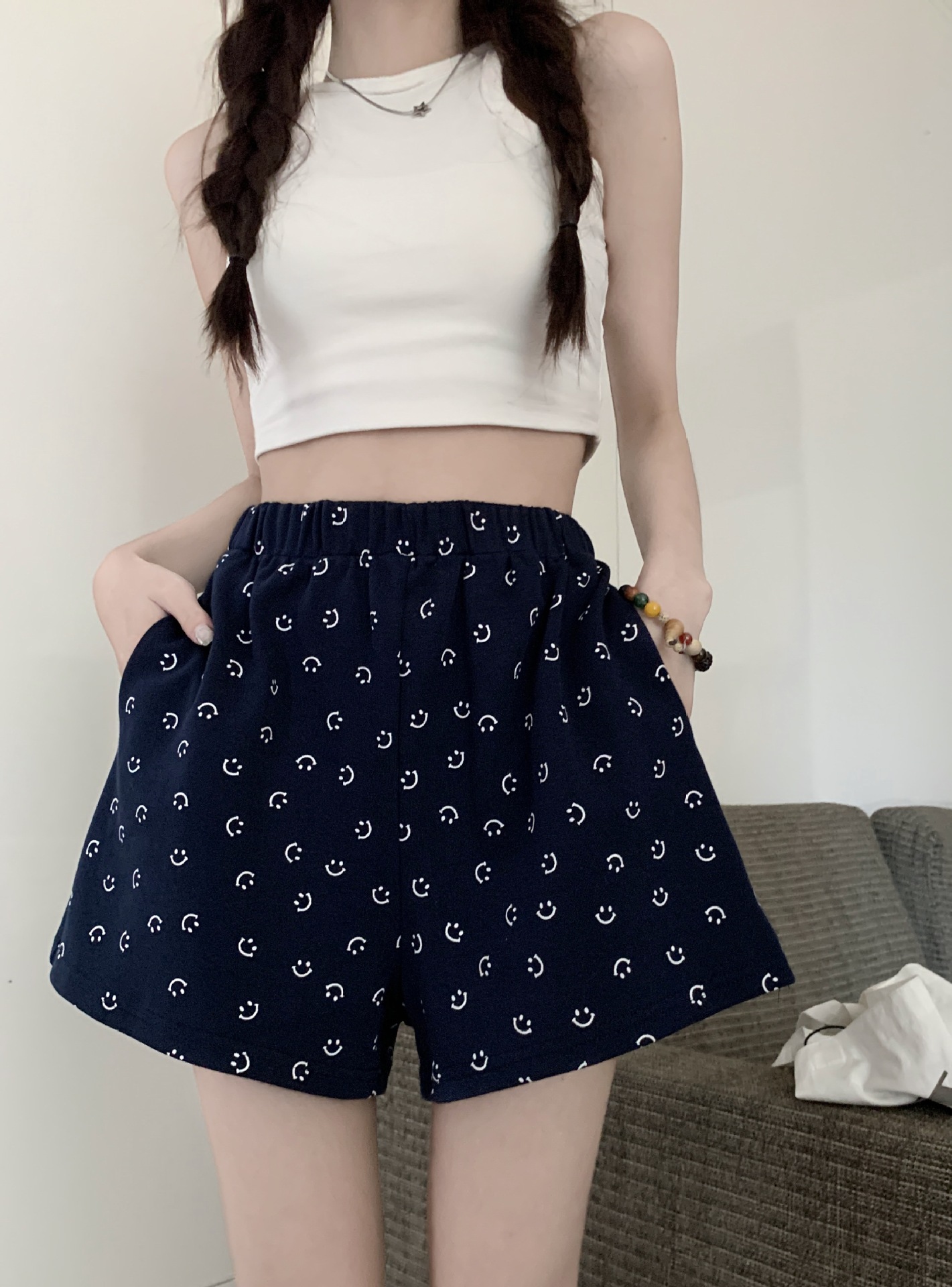 | nameOriginal | Cotton Shorts Women's Summer Home High Waist 2024 New Thin Smiley Printed Loose Wide Leg A- shaped Three-point Pants |