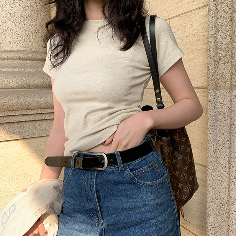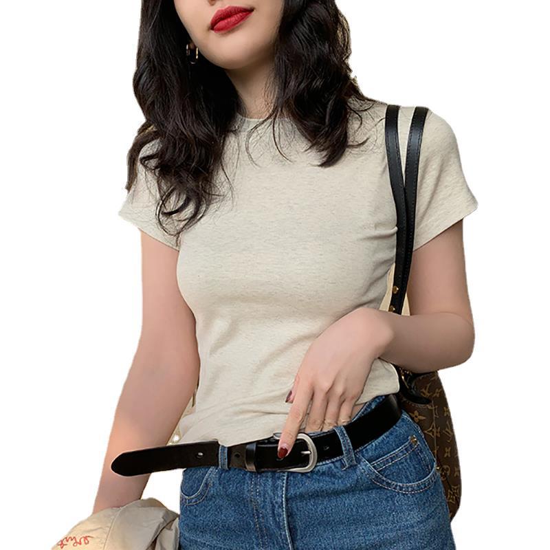 Cotton Shoulder Short-sleeved T-shirt Women’s Summer Casual All-match Top Ins Trendy T-shirt Slim-fit Slimming Basic Base Shirt