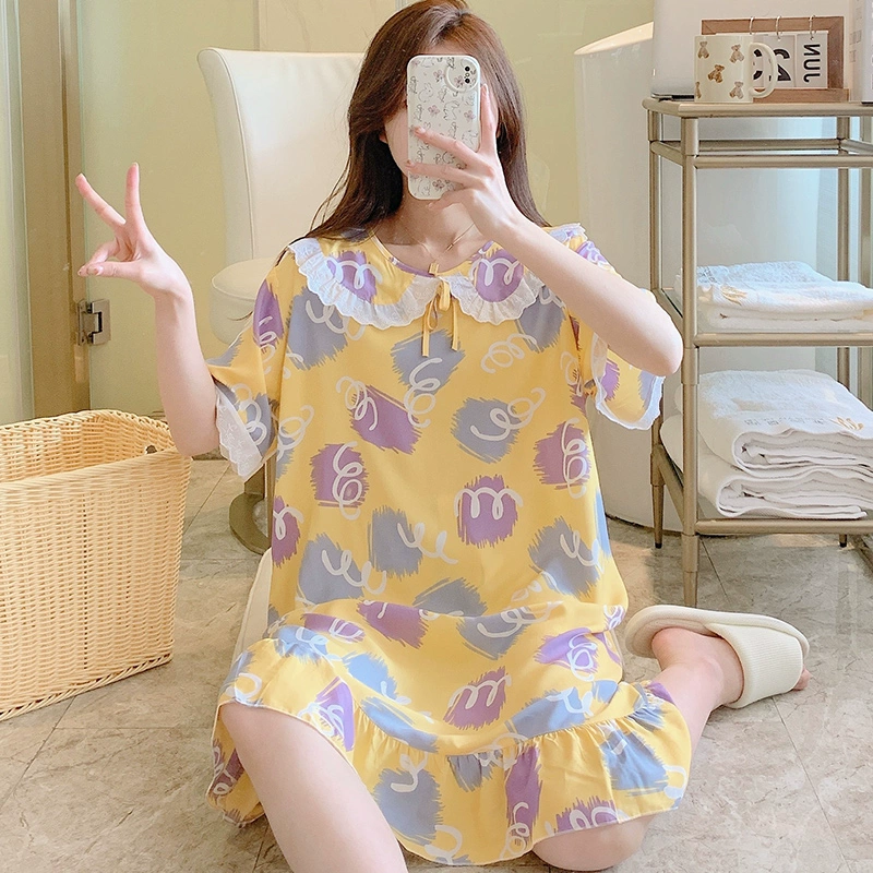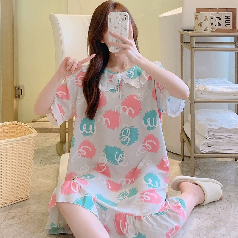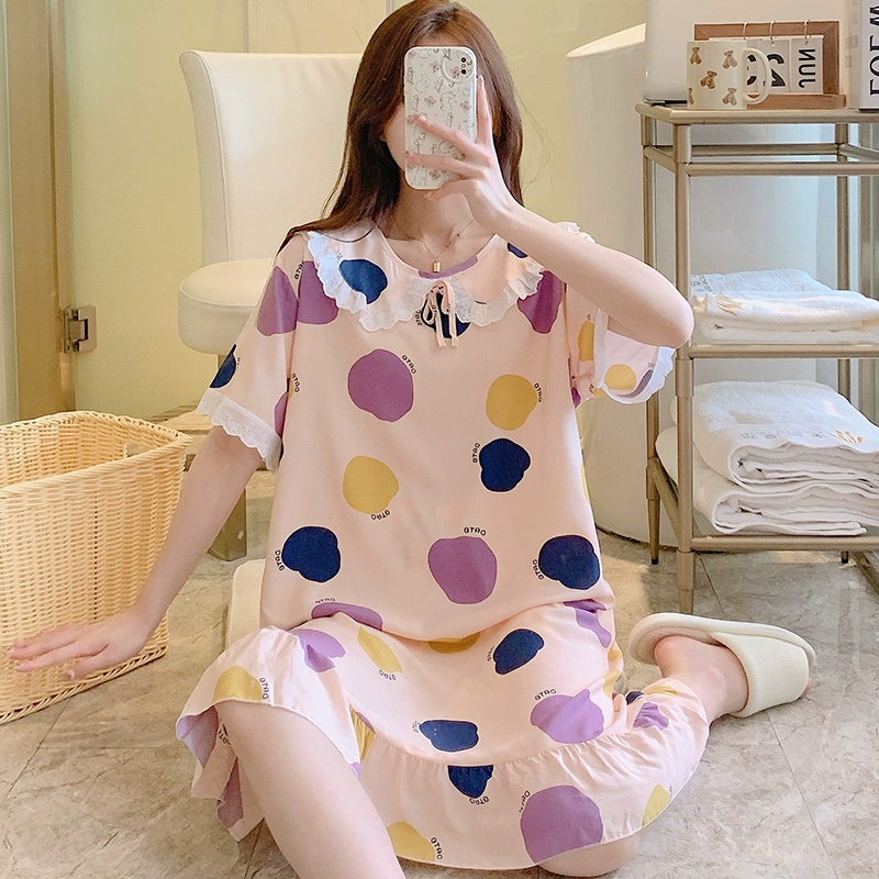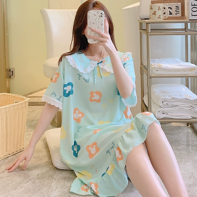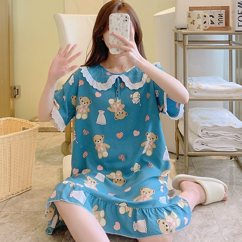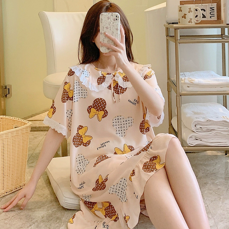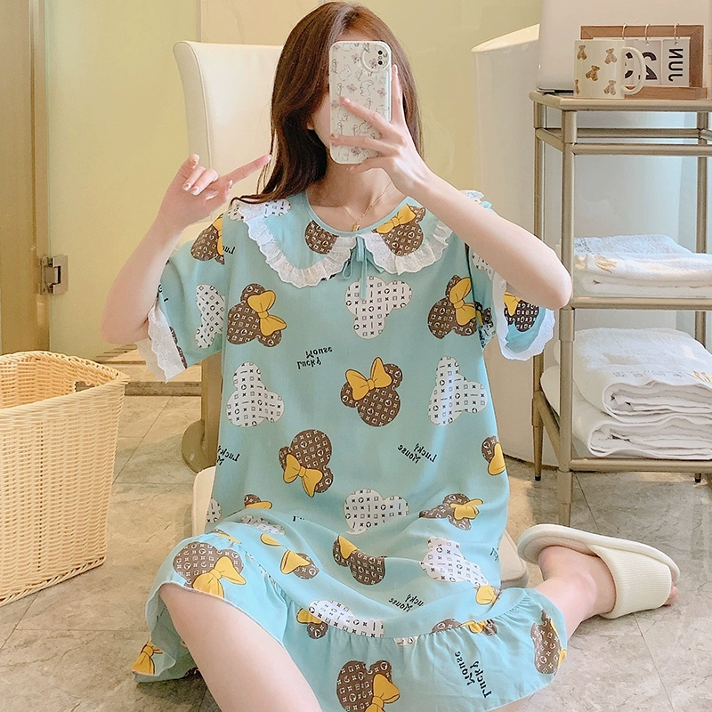 | nameOriginal | Cotton silk nightgown for women, summer style, short-sleeved, new style, can be worn outside, cartoon cute pajamas, home clothes, sweet and cute cotton silk skirt |