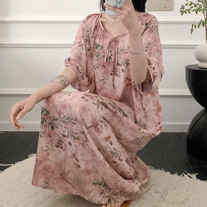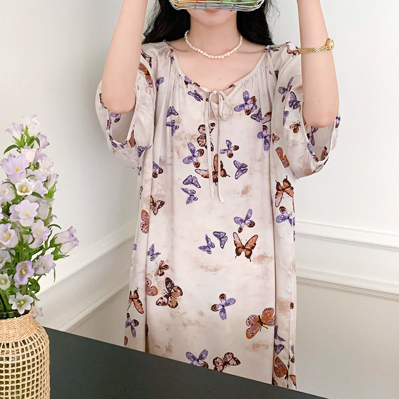 | nameOriginal | Cotton silk nightgown for women summer thin cotton silk pajamas cool butterfly national style new Chinese style cotton silk home skirt that can be worn outside |