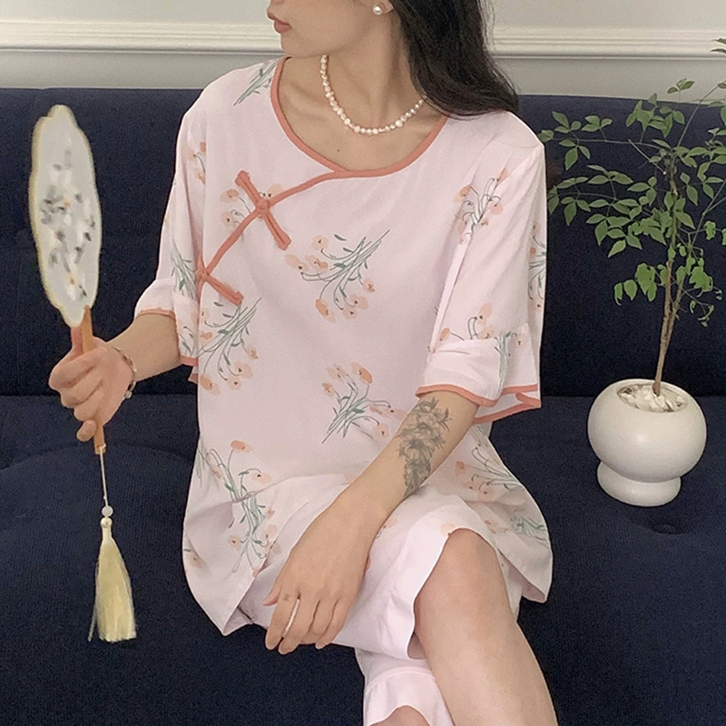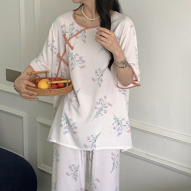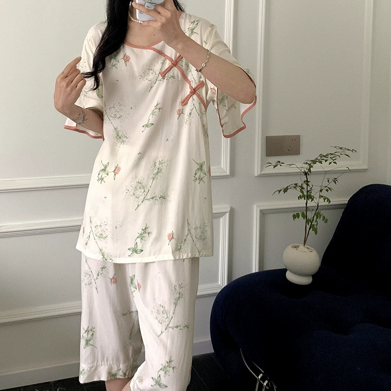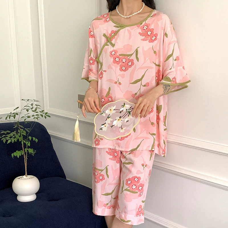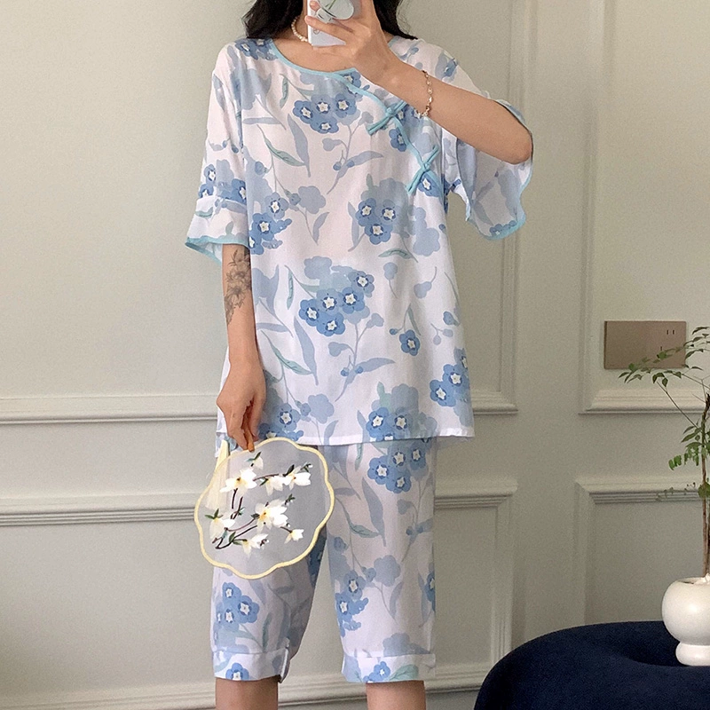 | nameOriginal | Cotton silk short-sleeved mid-pants women's summer Chinese style plus size pajamas |