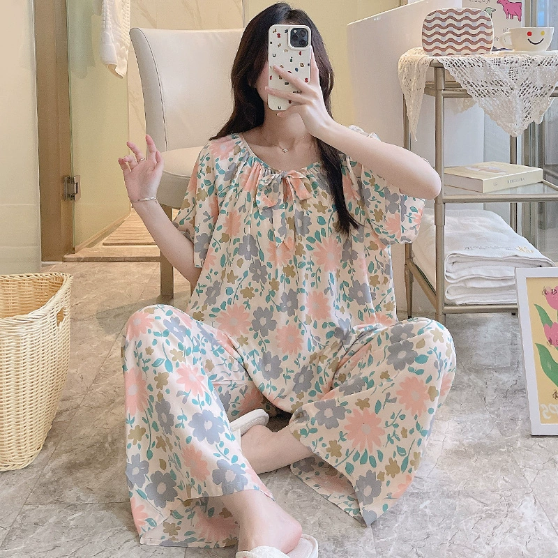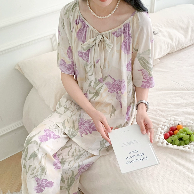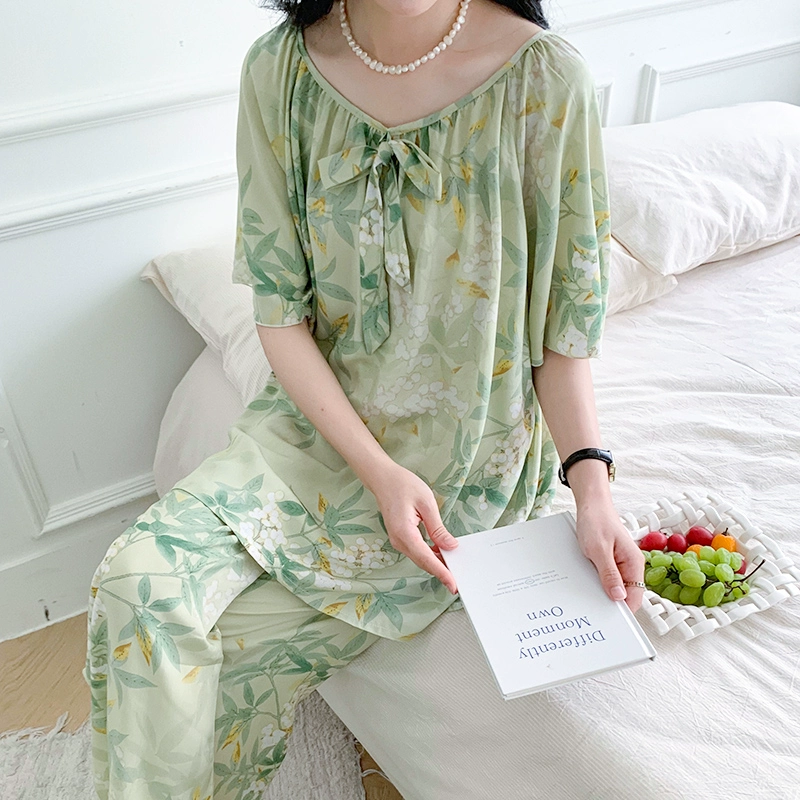 Cotton silk spring and summer national style women’s short-sleeved air-conditioned room pajamas