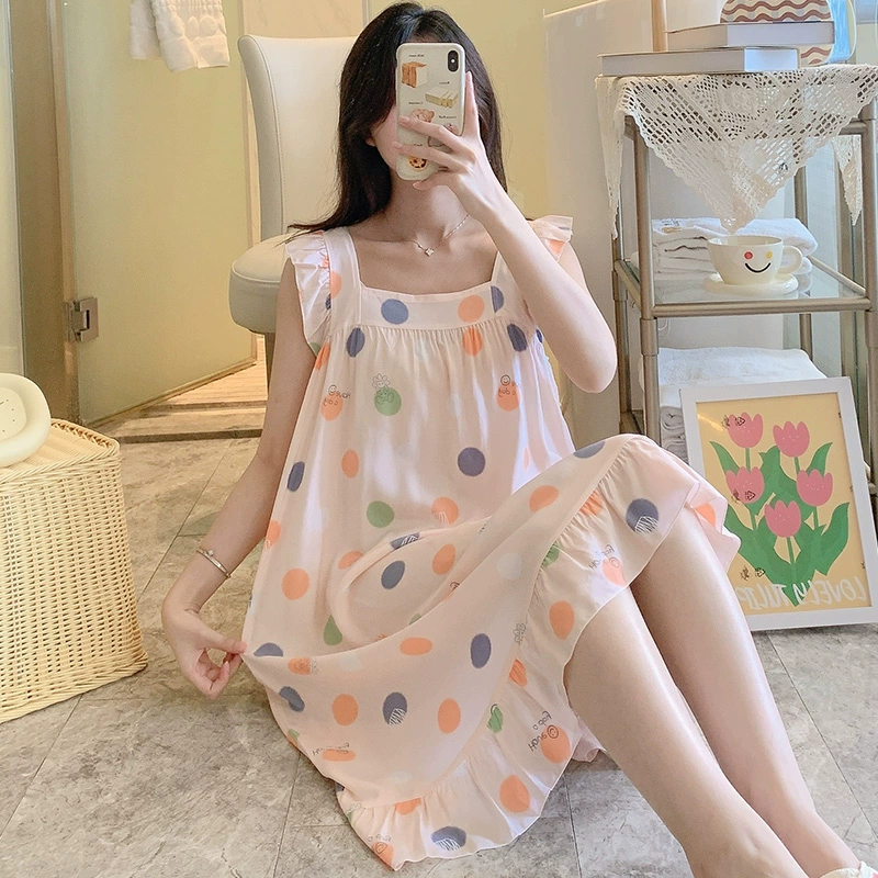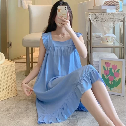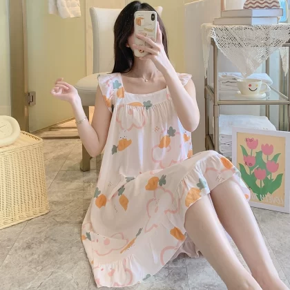 | nameOriginal | Cotton silk summer color sleeveless student sweet style nightgown |