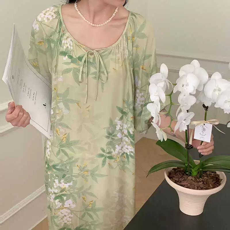 | nameOriginal | Cotton silk temperament summer plus size tea dress Chinese style nightgown |
