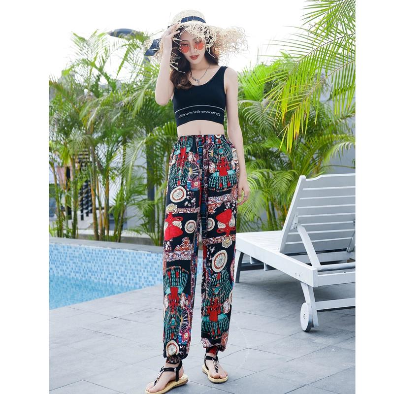 Cotton and silk yoga thin dance wide -leg big lantern pants