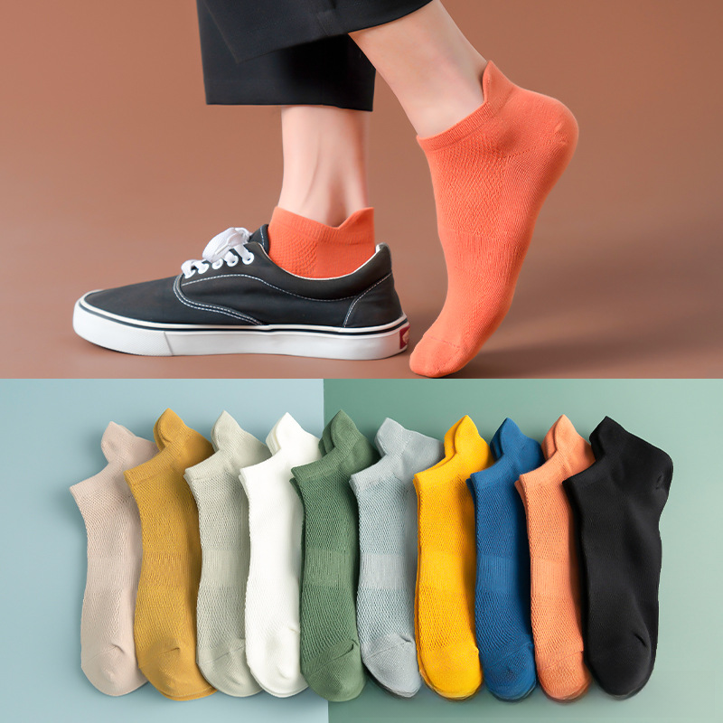 Cotton socks men’s short socks spring and summer thin summer deodorant sweat-absorbent shallow socks ear mesh wholesale