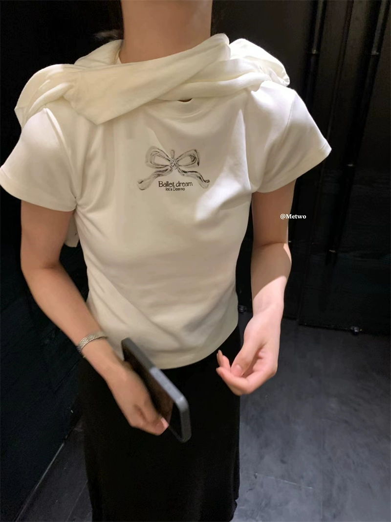 | nameOriginal | Cotton tee summer new casual shoulder bow |