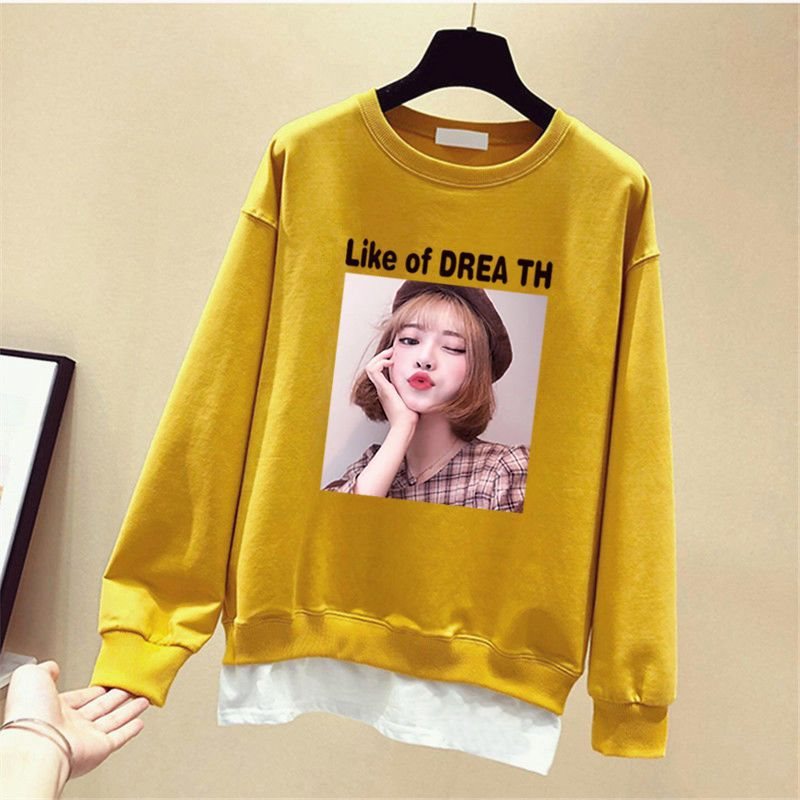| nameOriginal | Cotton Thin Korean Style Loose Fake Two-Piece Sweatshirt Women's Autumn New Fashionable Ins Round Neck Jacket for Students |