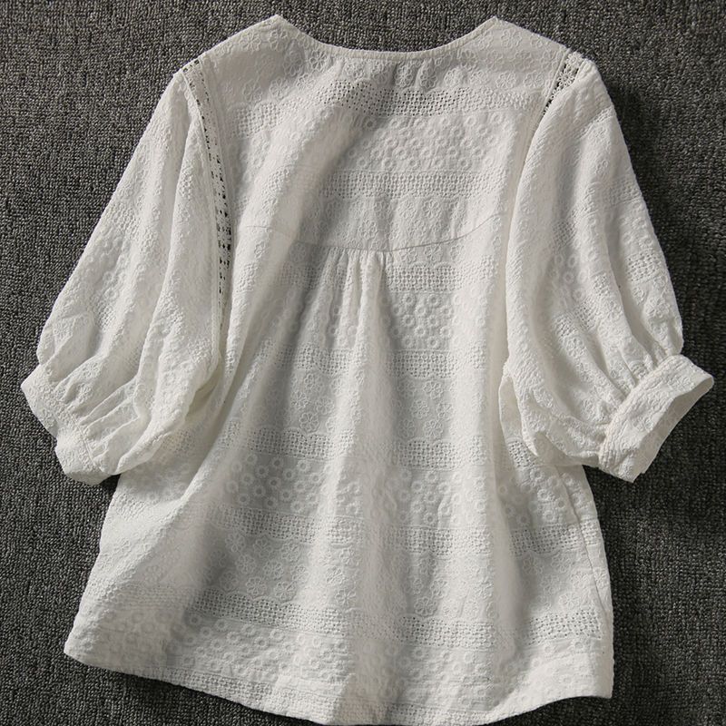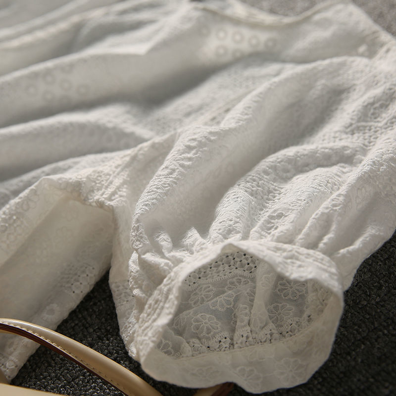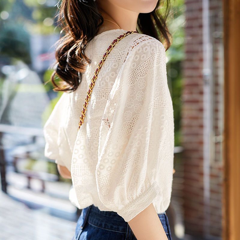 | nameOriginal | Cotton Top Women's Summer All-match 2024 Summer New Water-soluble Embroidered Lantern Sleeve Loose Lace Shirt Clothes for Women |