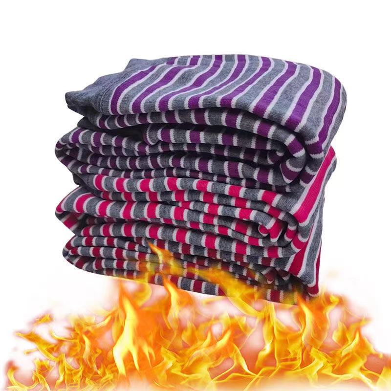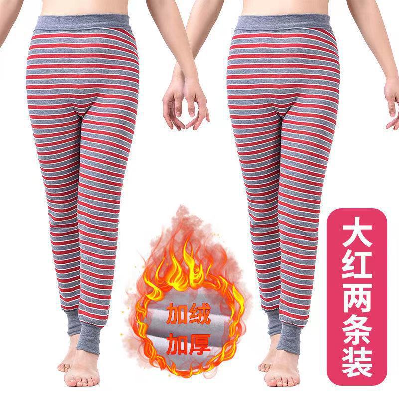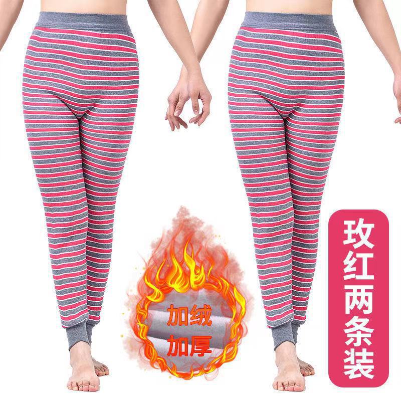 Cotton Trousers Middle-aged and Elderly Women's Pants Lined Pants Force Pants High Thermal Energy Pants Single Piece Striped Pants for Pants