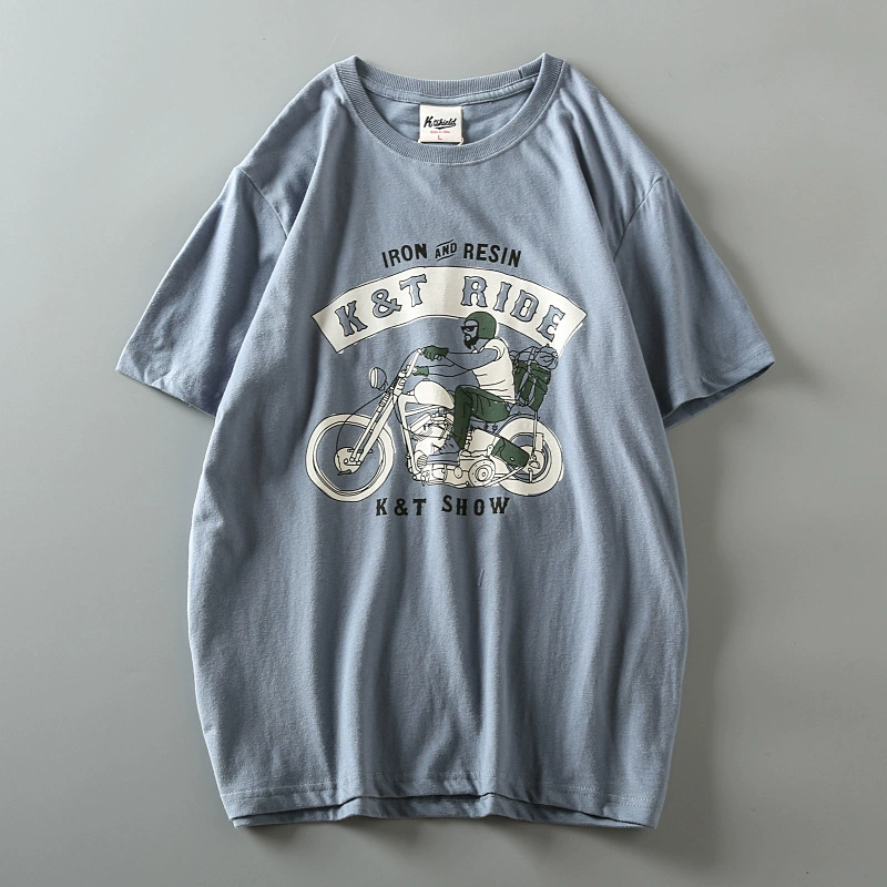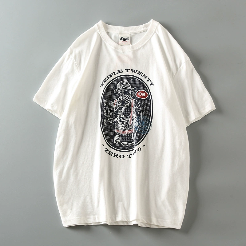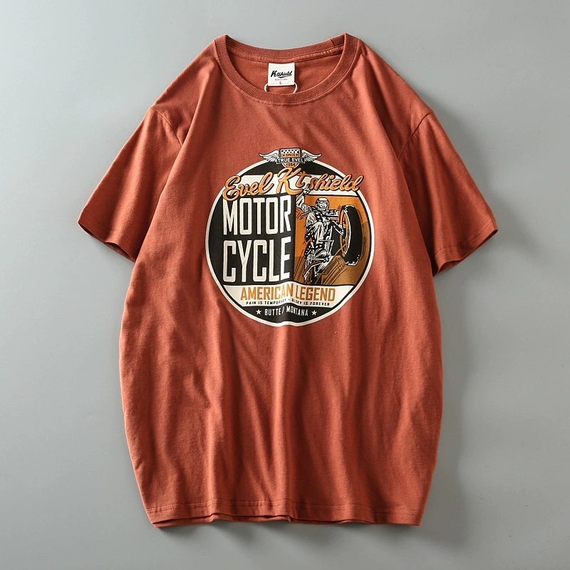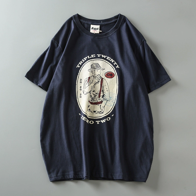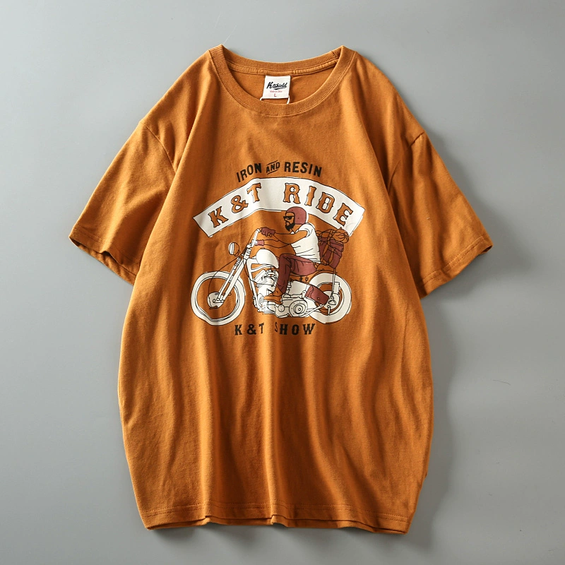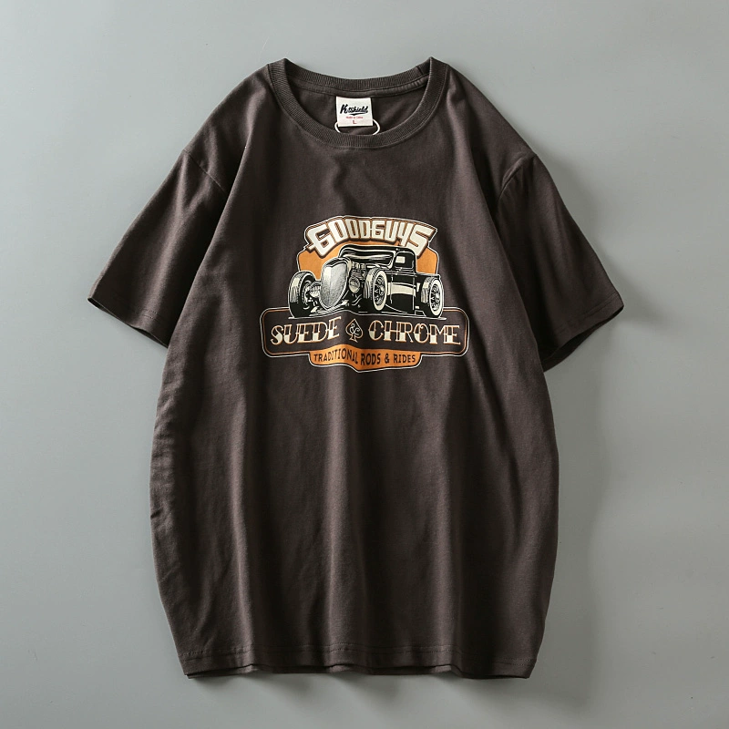 Fully cotton wash and furry men’s retro short-sleeved T-shirt