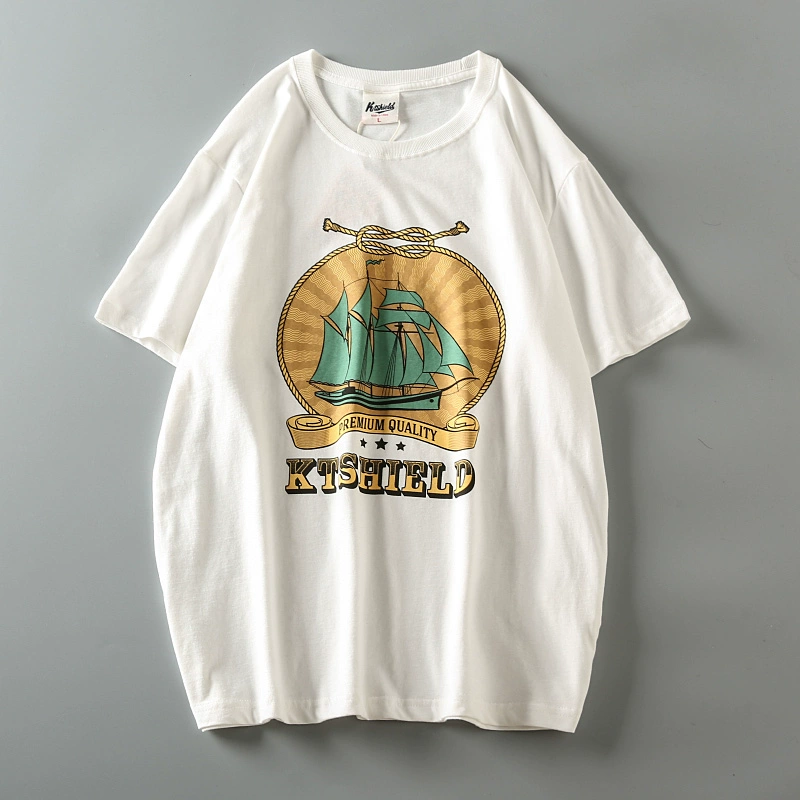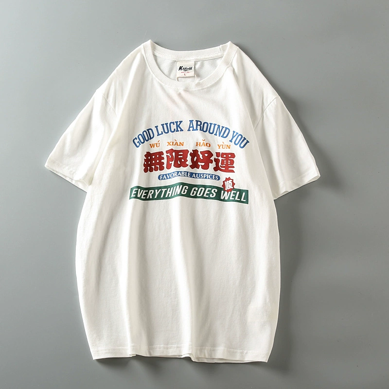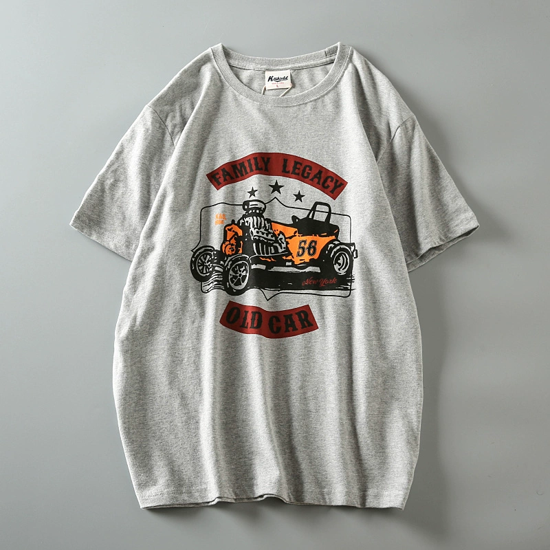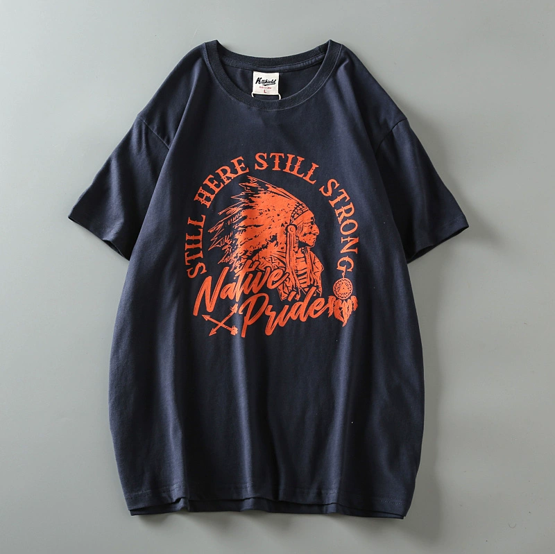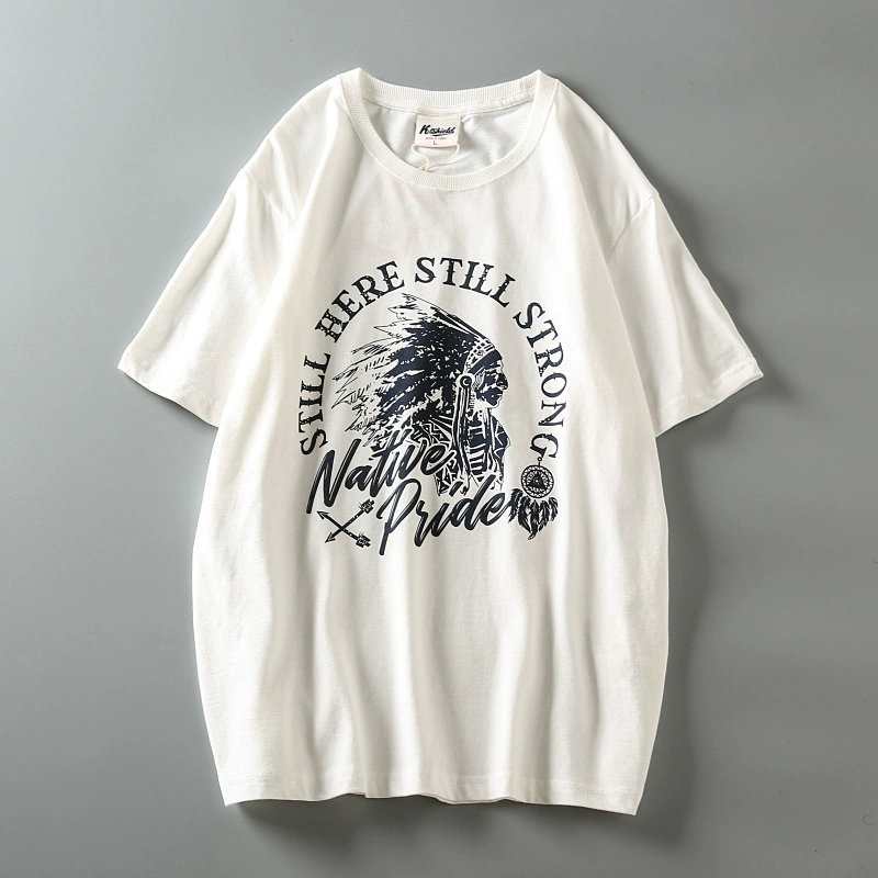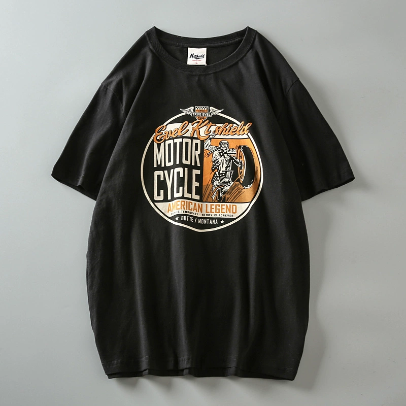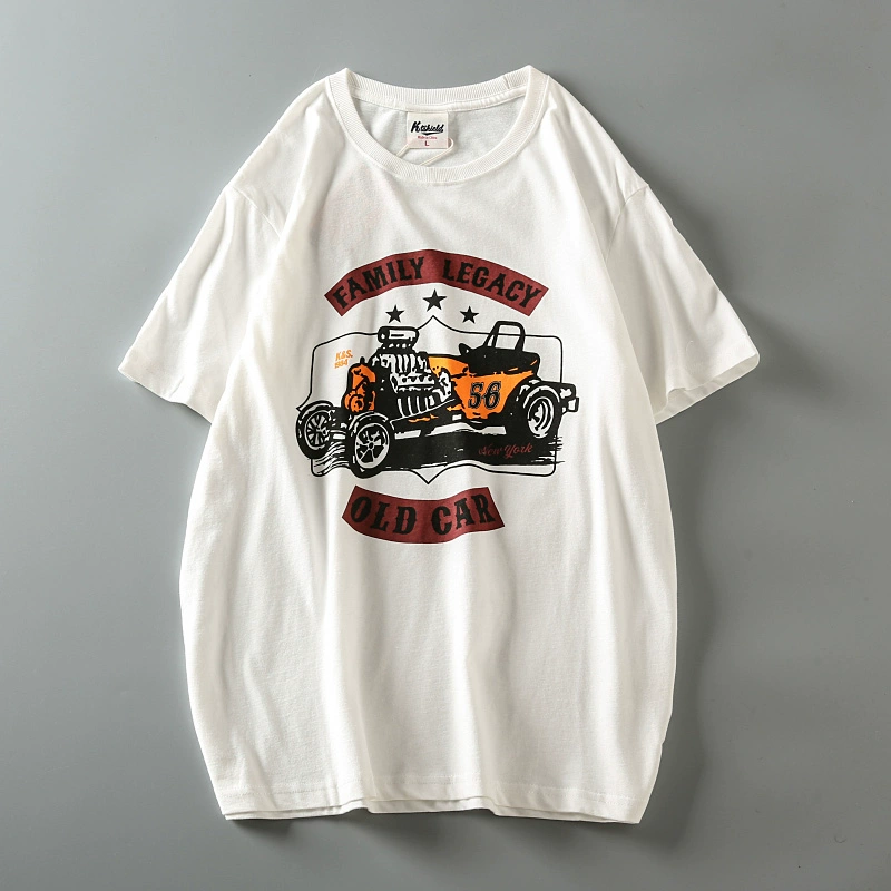 Fully cotton wash and furry men’s retro short-sleeved T-shirt