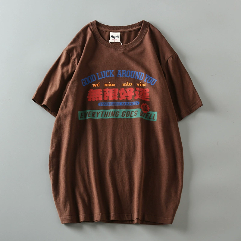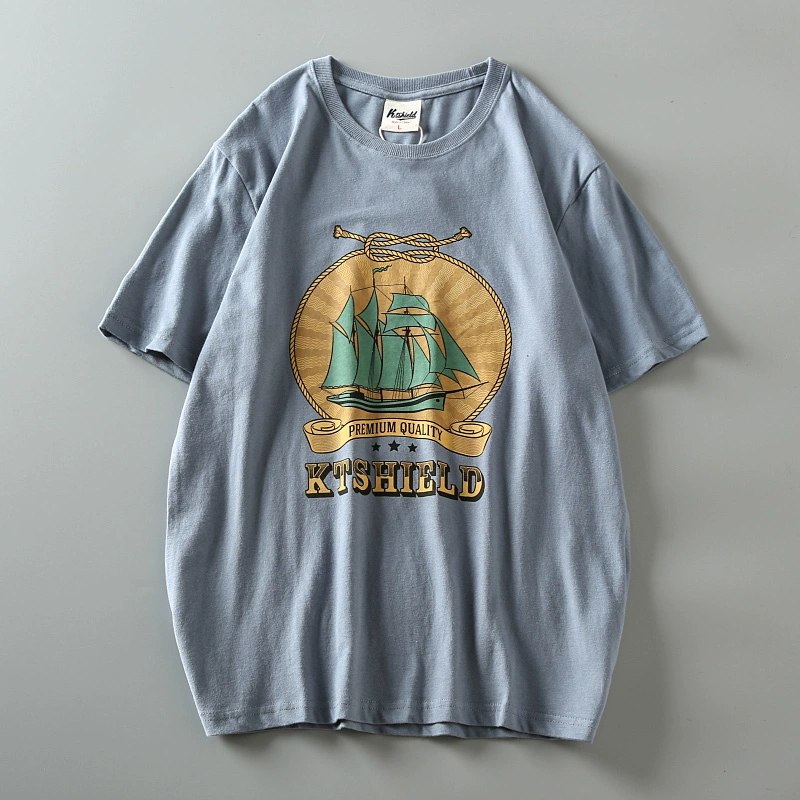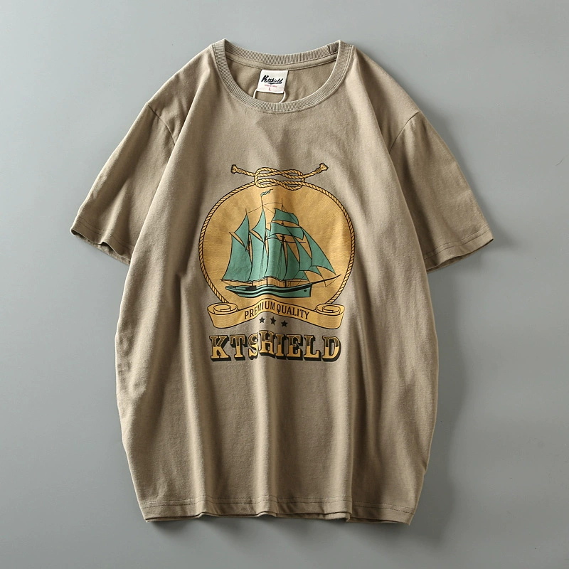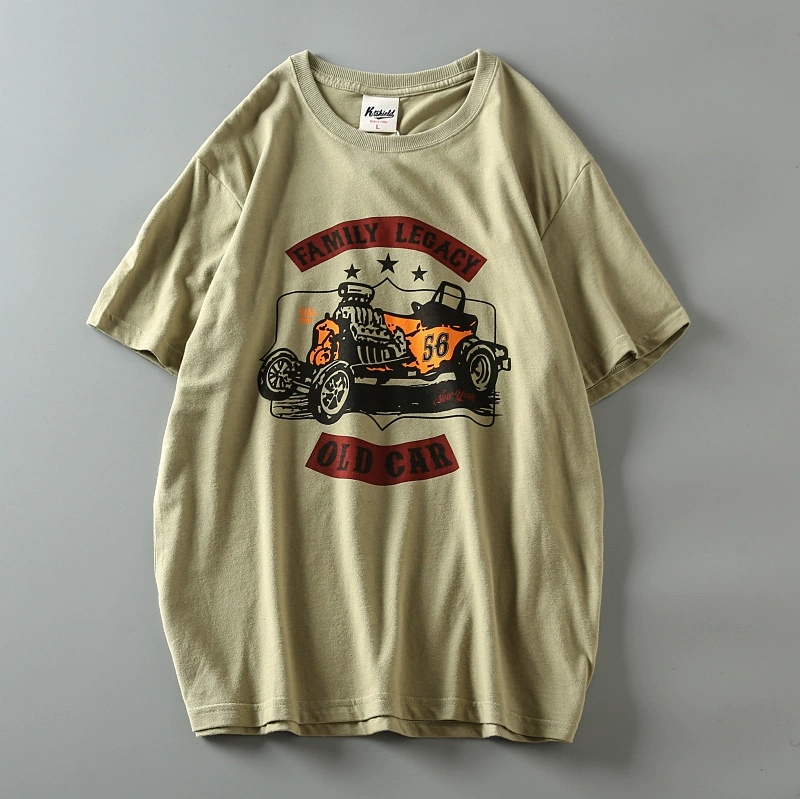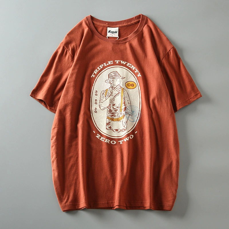Cotton washed brushed men's retro short-sleeved T-shirt