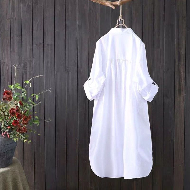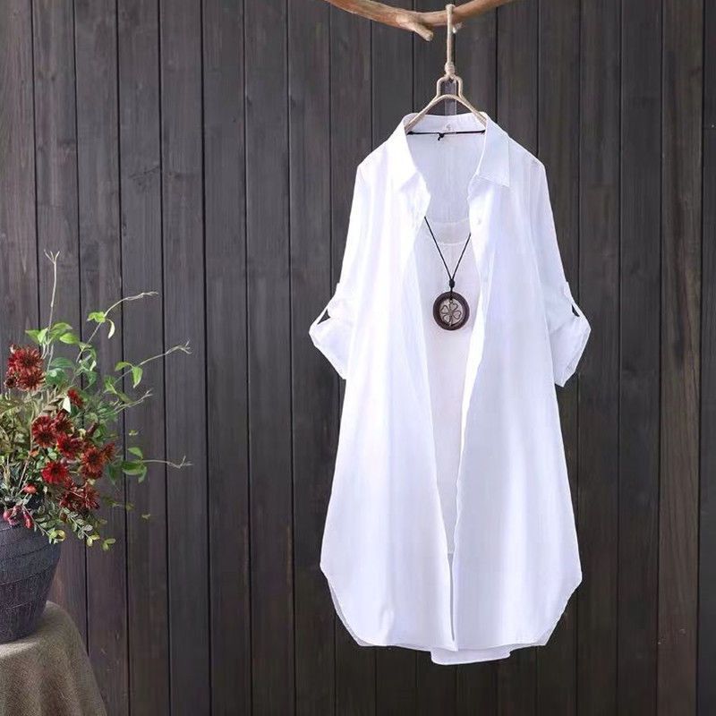 | nameOriginal | Cotton White Long Sleeve Shirt Women's Mid-length 2024 Spring and Autumn New Coat Loose Artistic Cardigan Casual Shirt |