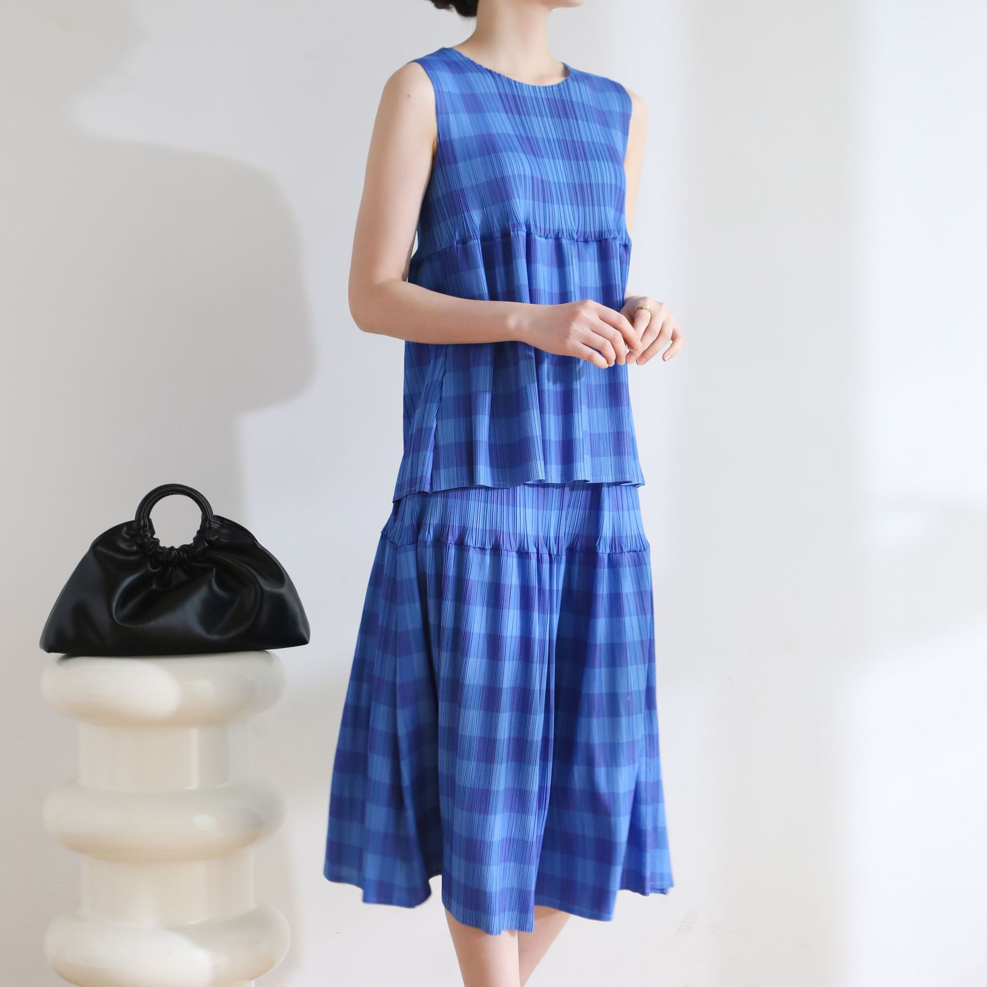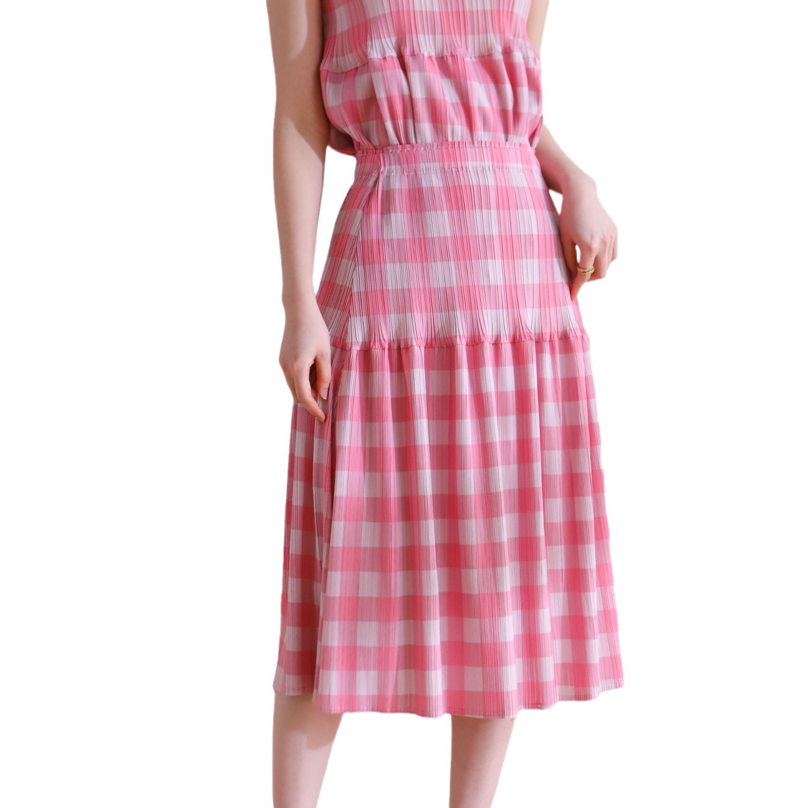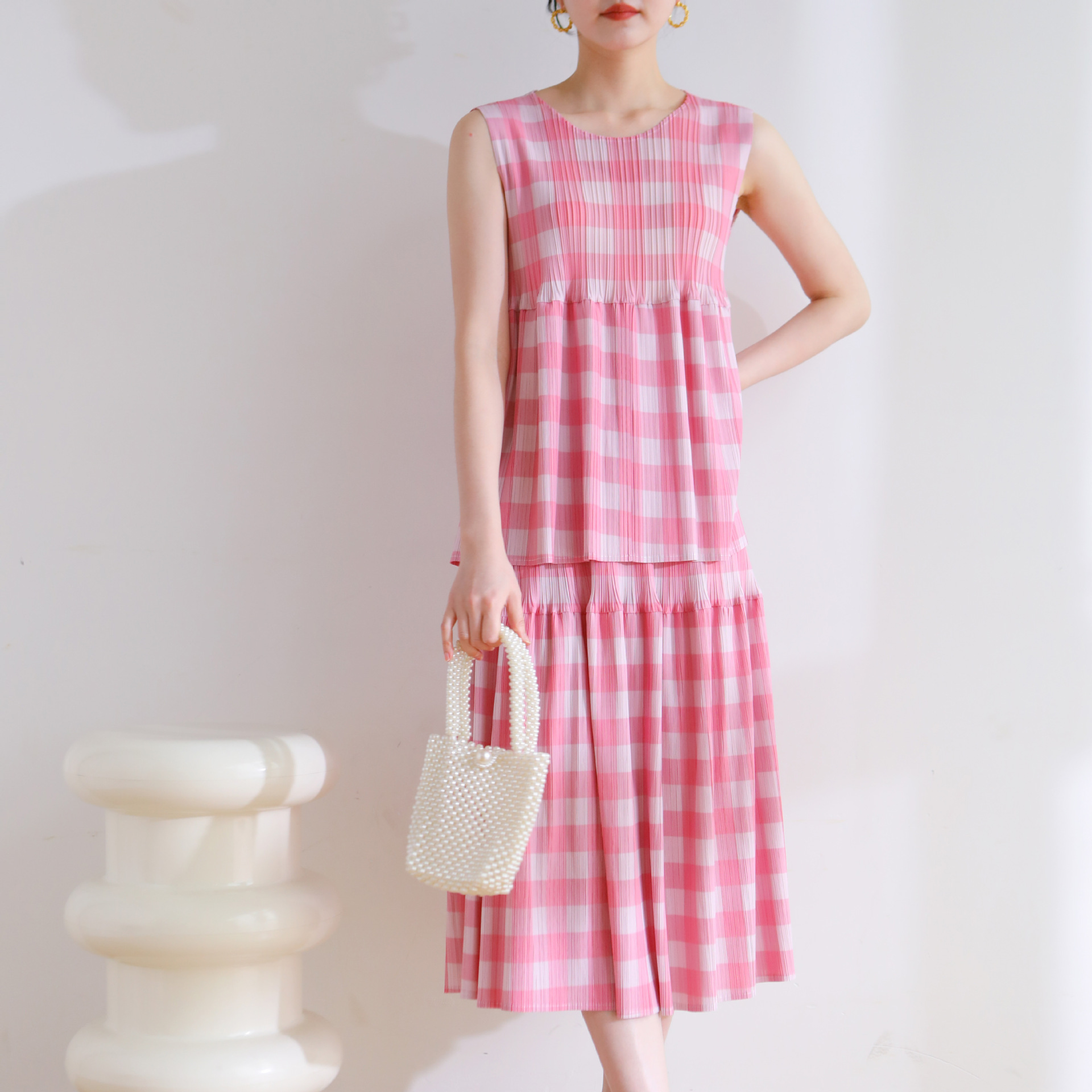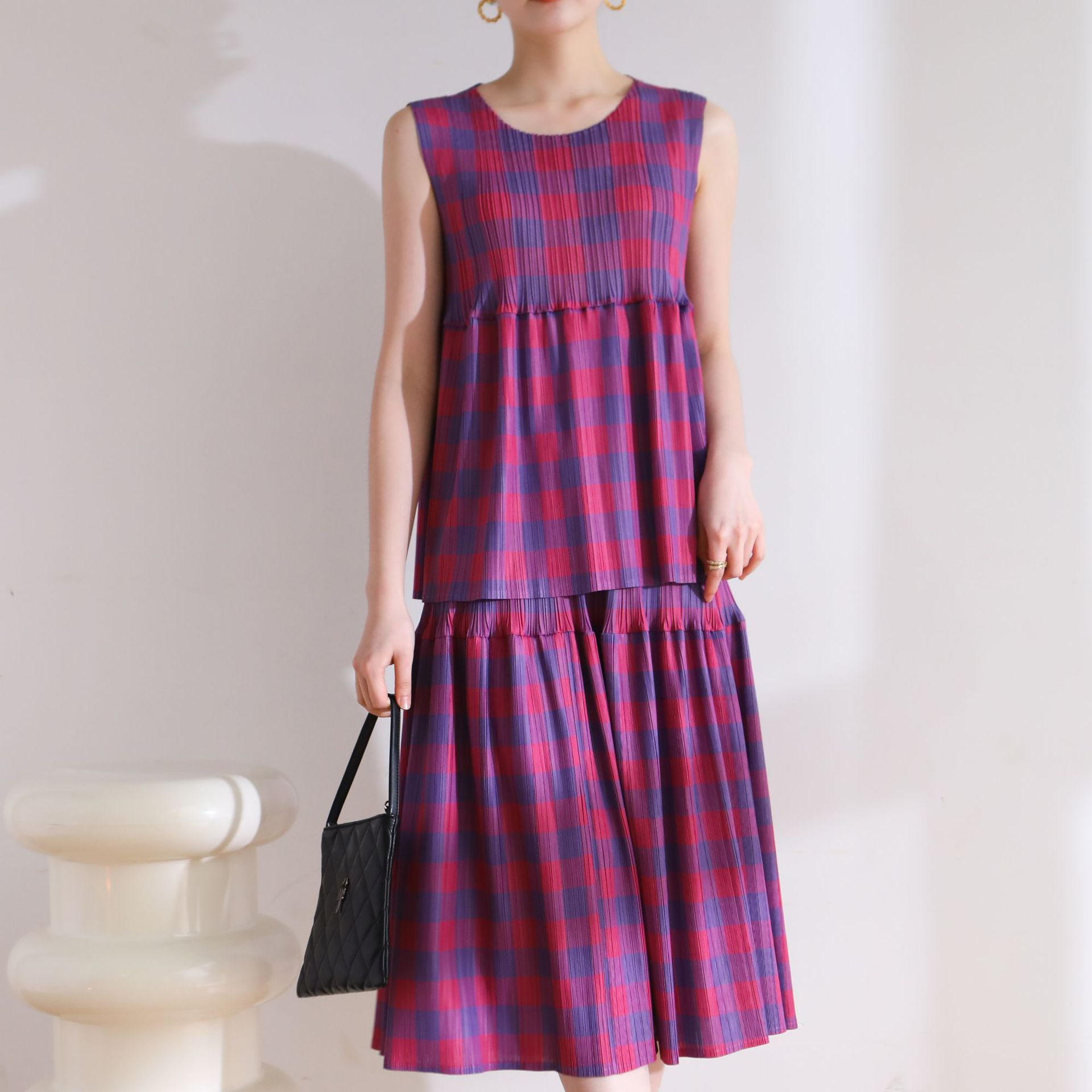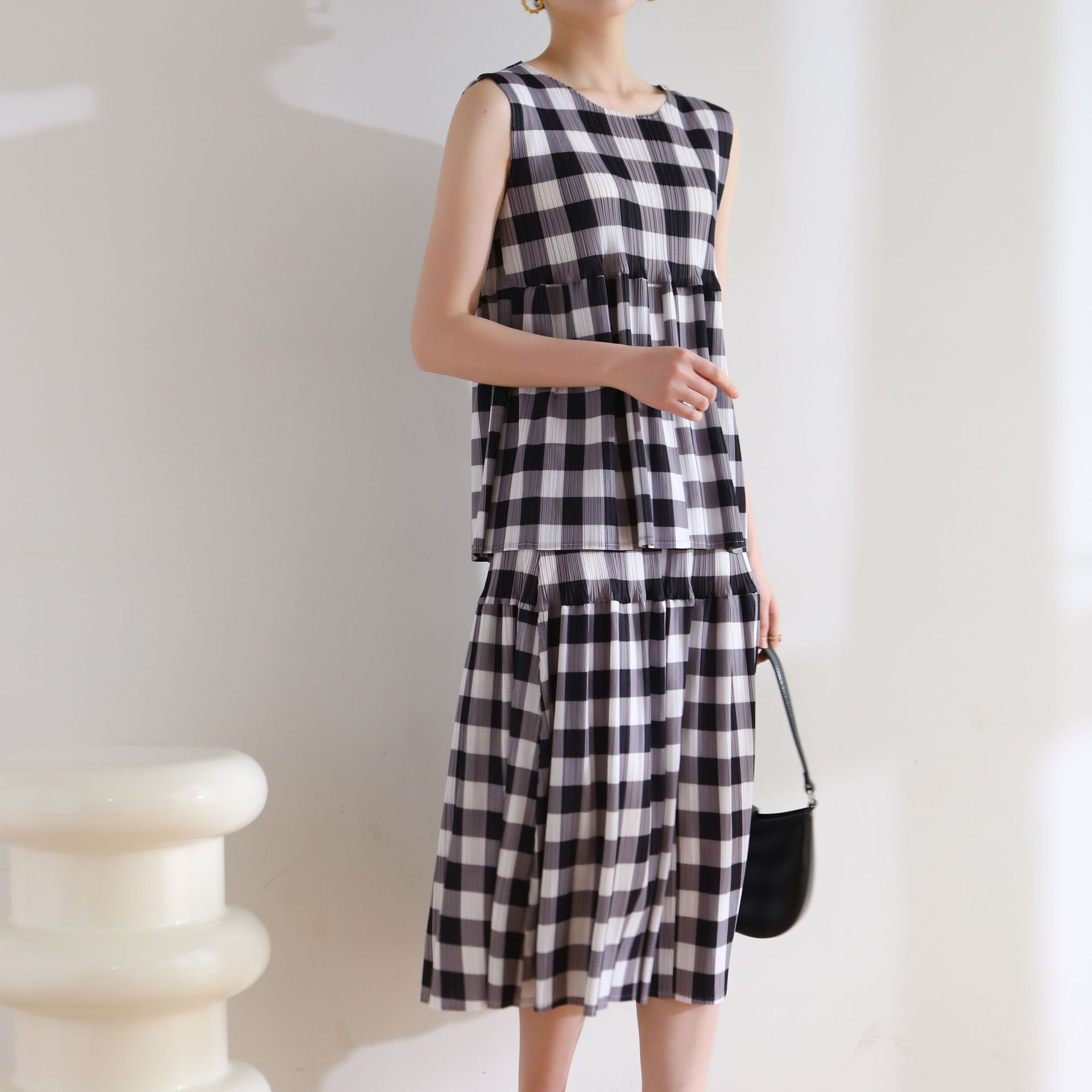| nameOriginal | Counter quality 2024 Summer pleated Japanese style age-reducing casual style loose plaid printed doll skirt suit |