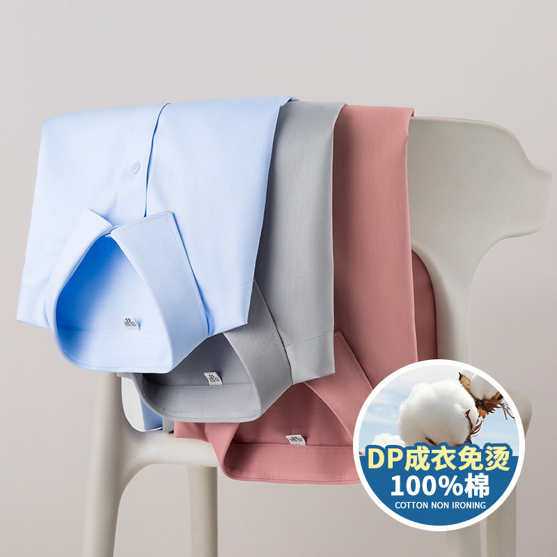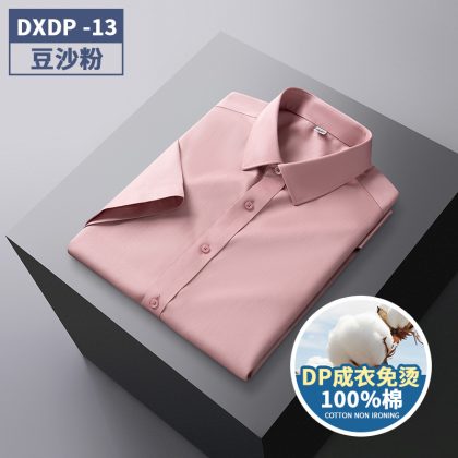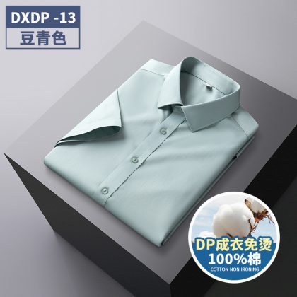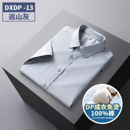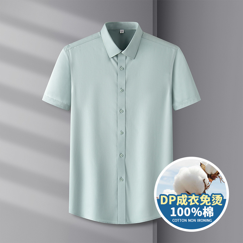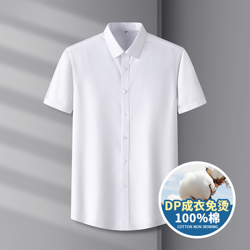 Counter Quality DP Remade Clothes Non-ironing Pure Cotton Men's Easy-to-take Short-sleeved Shirt High Quality Business Wrinkle Resistant Casual Men