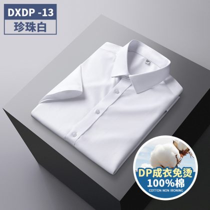 Counter Quality DP Remade Clothes Non-ironing Pure Cotton Men’s Easy-to-take Short-sleeved Shirt High Quality Business Wrinkle Resistant Casual Men