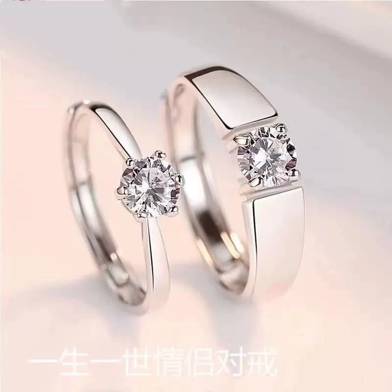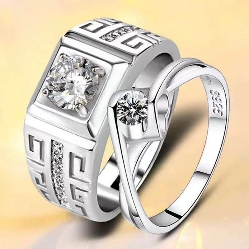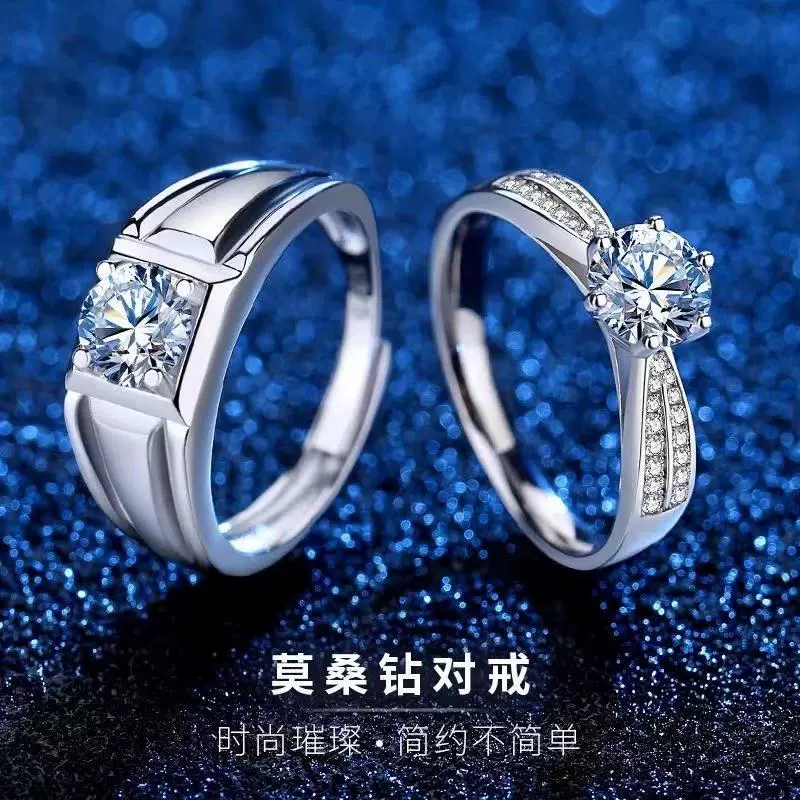 | nameOriginal | Counter quality six prong moissanite silver couple wedding ring |