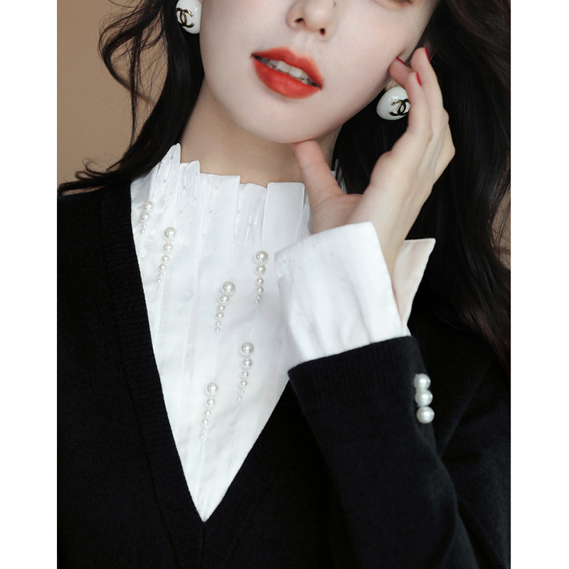 | nameOriginal | Counter Shopping Mall Withdraws First-Line Export Cut-off Tail List Women's Fake Two-Piece Pearl Lace Vertical Collar Shirt Top |