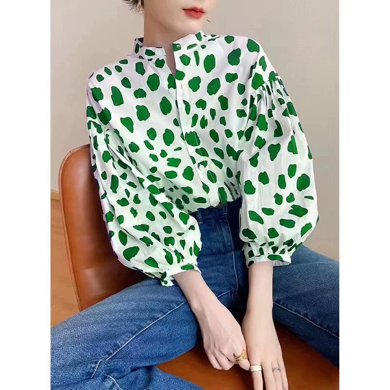 | nameOriginal | Counter shopping malls have withdrawn the first-line export cut-off single-tail single women's clothing retro irregular printed stand-up collar shirt for women |