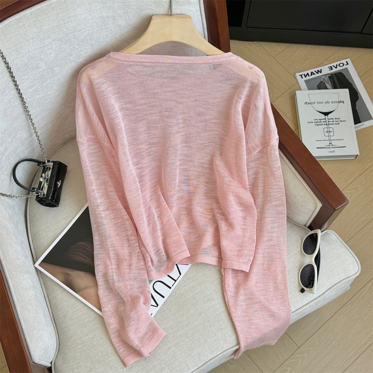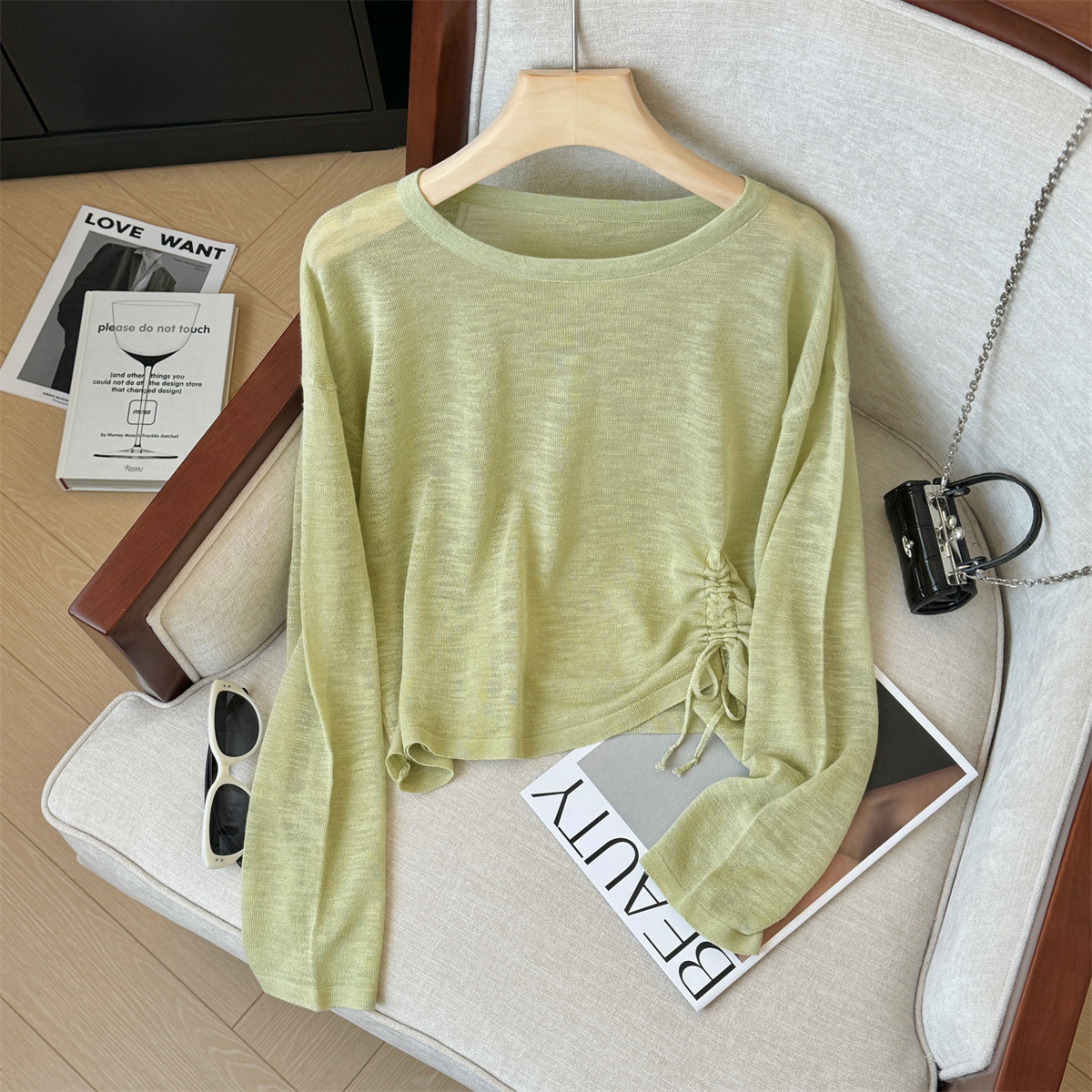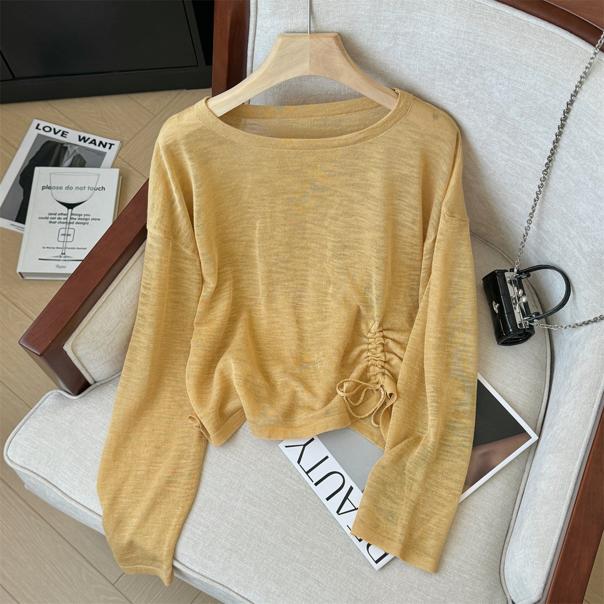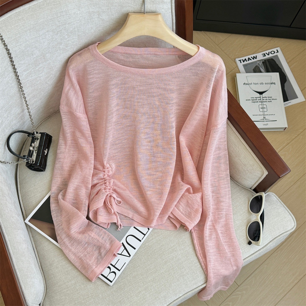 | nameOriginal | Counter Withdraws Cut Label Women's Thin Knitted Sunscreen Shirt Women's Summer Outer Wear Drawstring Long Sleeve Loose Top |