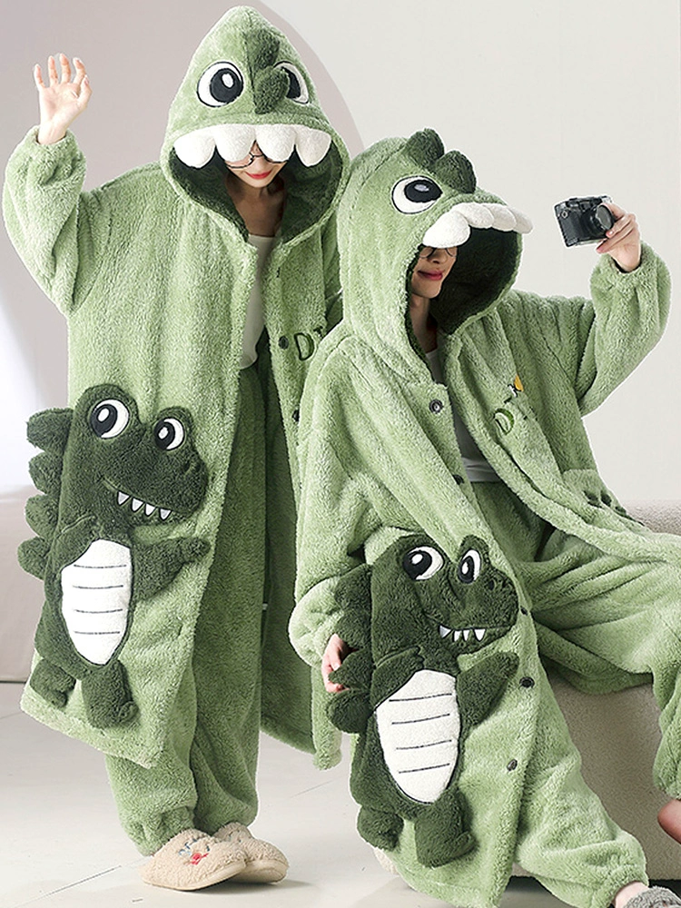 Couple coral velvet male plush pajamas, long dinosaur pajamas, autumn and winter 2023 new velvet thickened