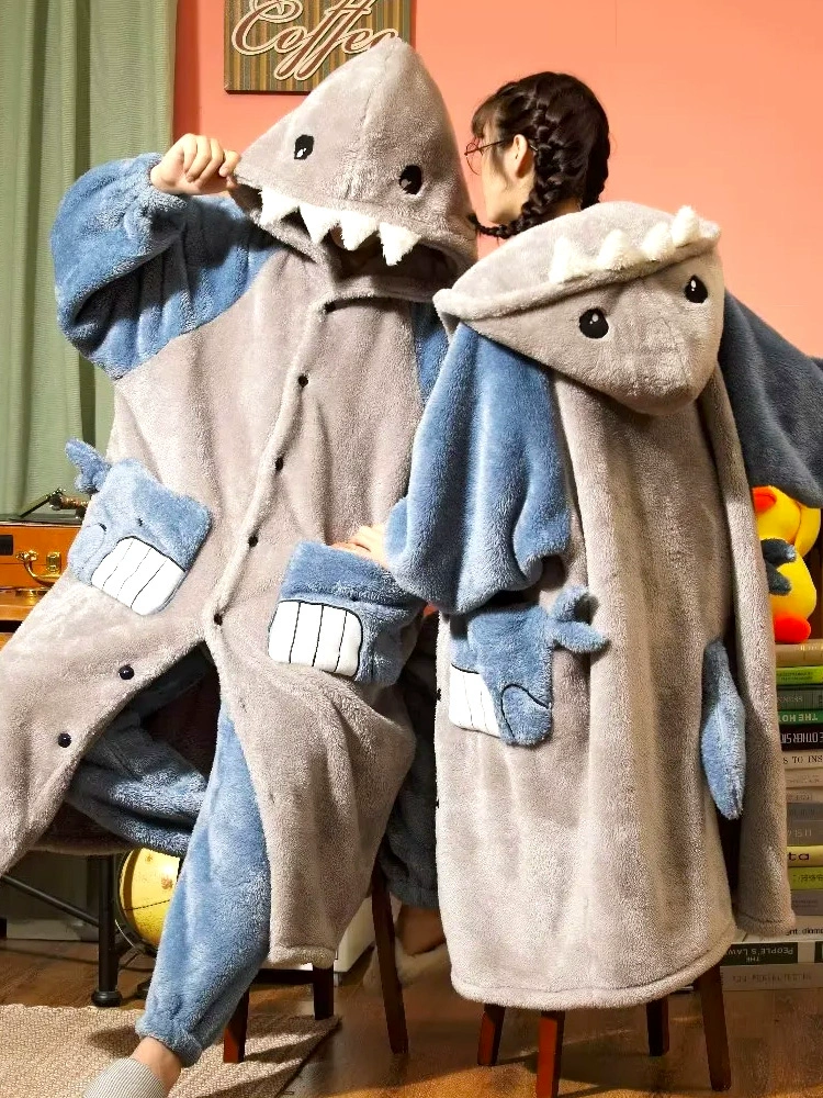 Couple coral velvet men and women plush nightgown long dinosaur pajamas autumn and winter 2023 new plus velvet thickening
