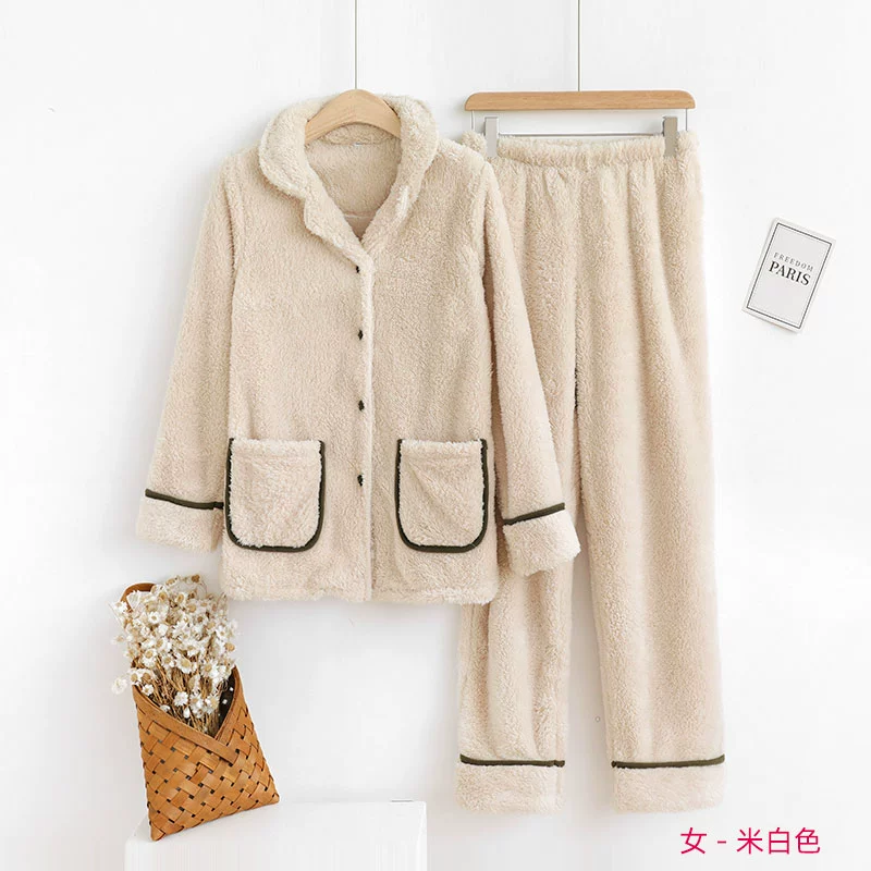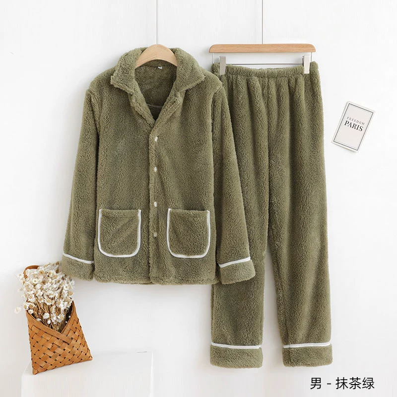 | nameOriginal | Couple coral velvet pajamas plus velvet thickening men's flannel women's long-sleeved home clothes suit lapel cardigan large size |