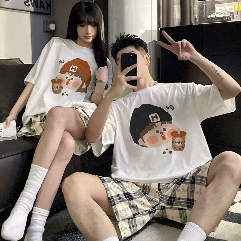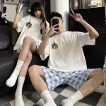 | nameOriginal | Couple female pure cotton cute milk tea plaid summer cartoon |