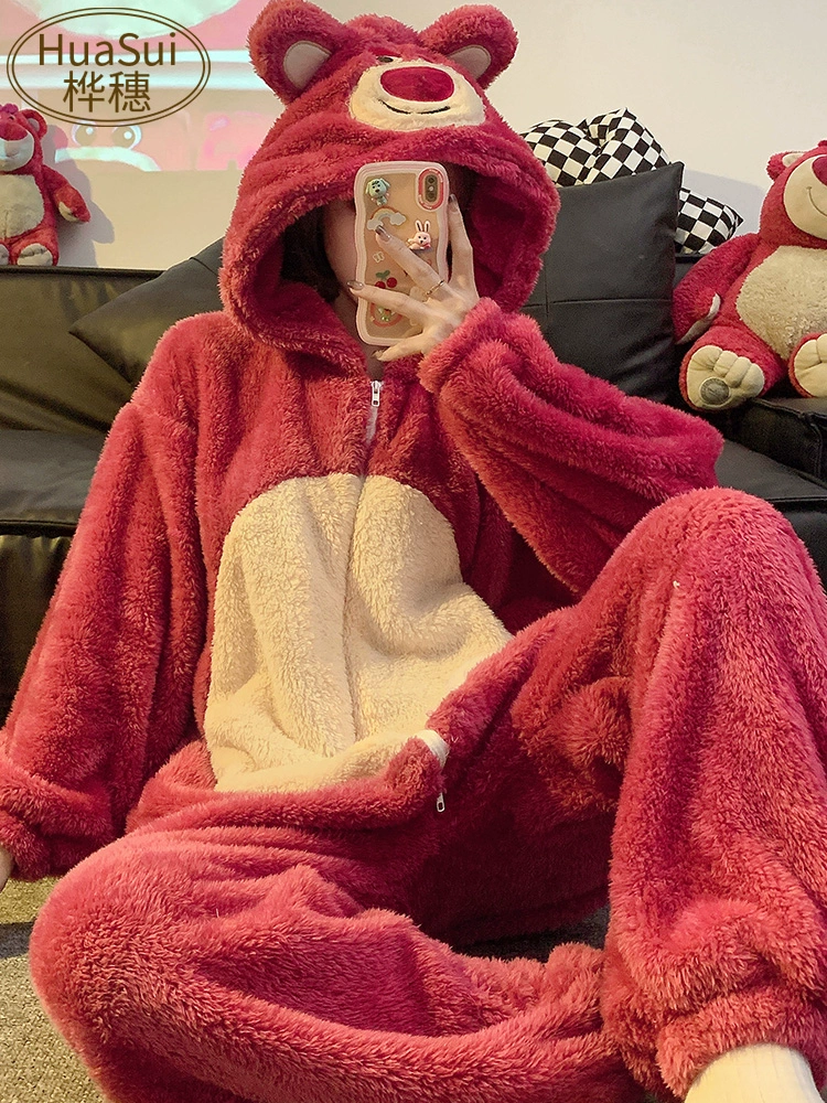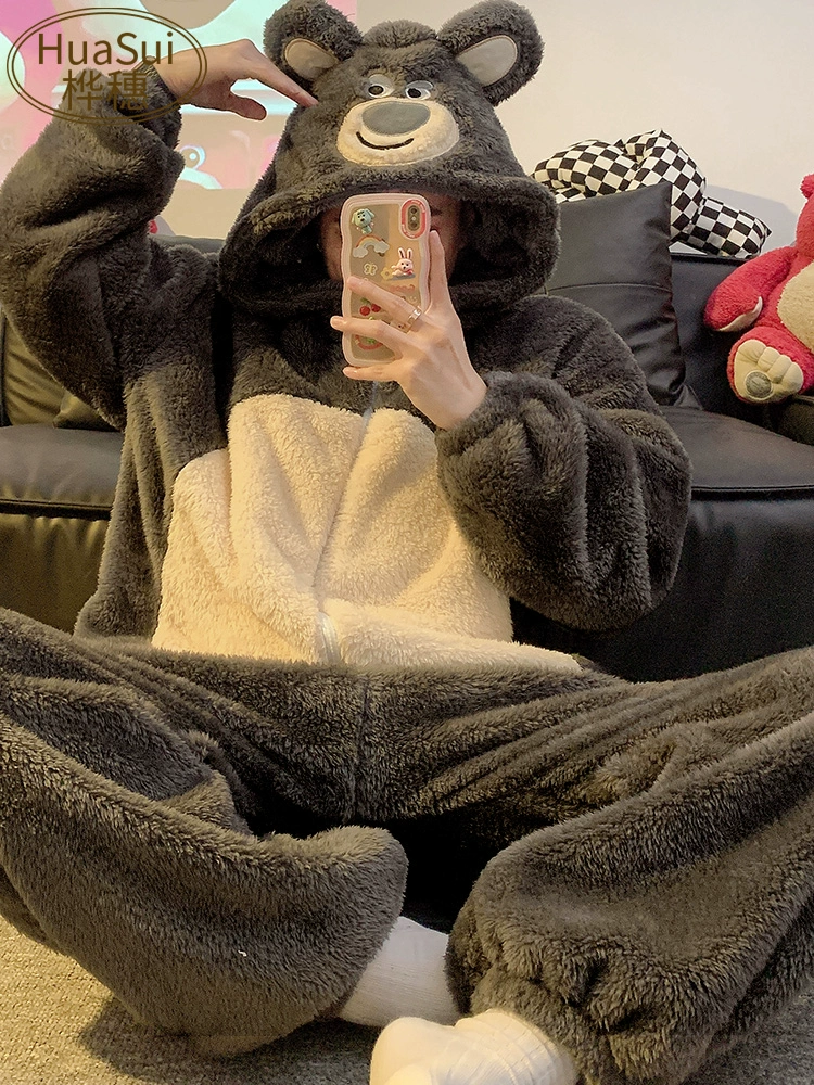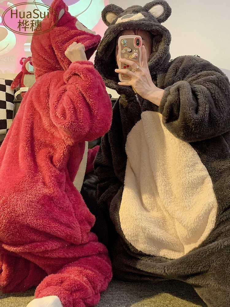 | nameOriginal | Couple one-piece pajamas for women in autumn and winter thickened and velvet coral velvet cute winter men's flannel home clothes |