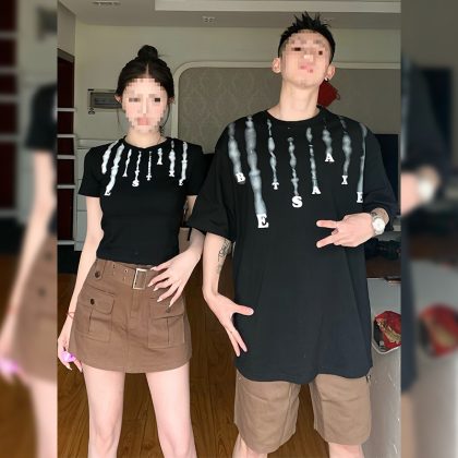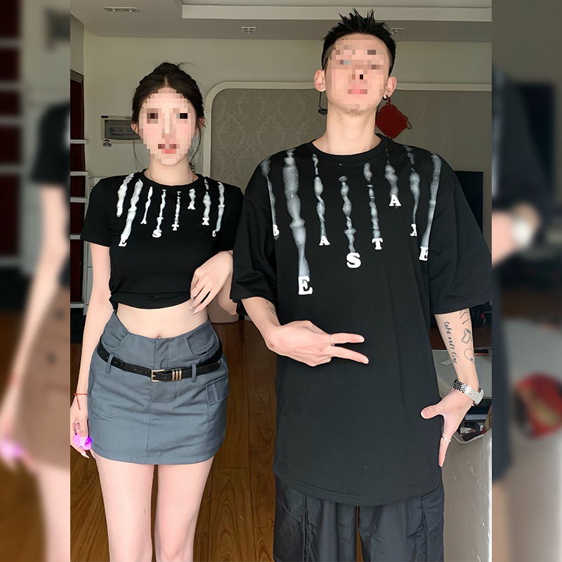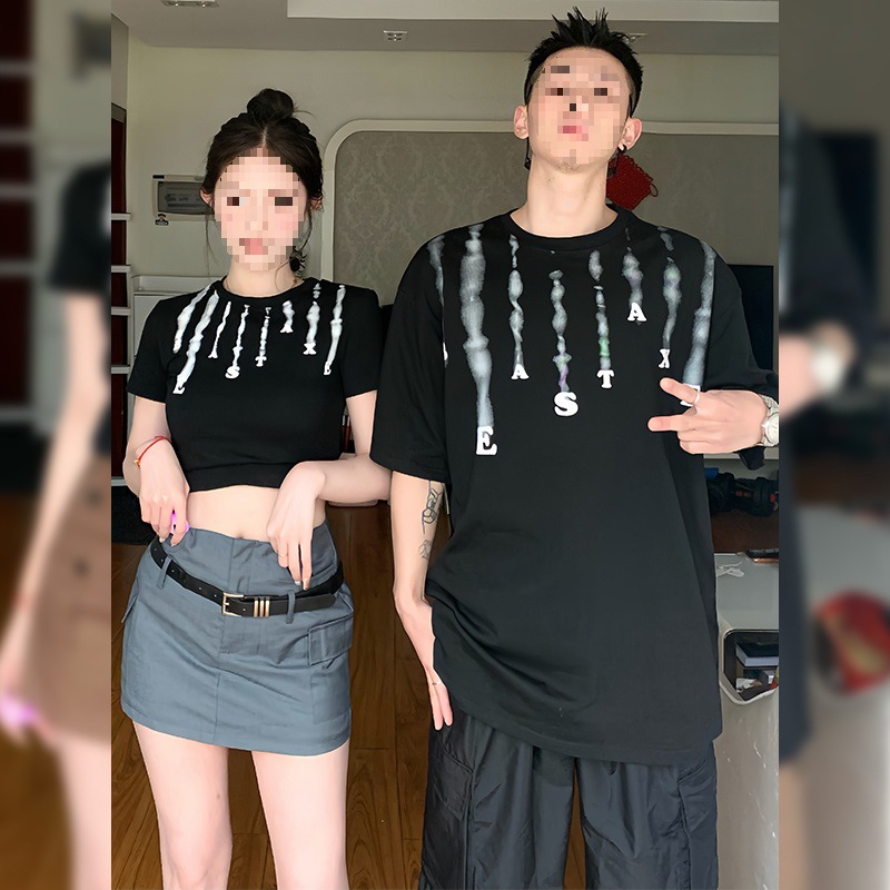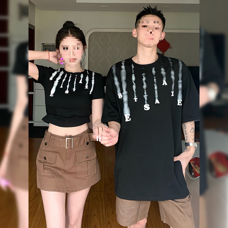 Couple outfit summer 2024 new high-end niche design Korean slim short sleeve T-shirt long and short suit