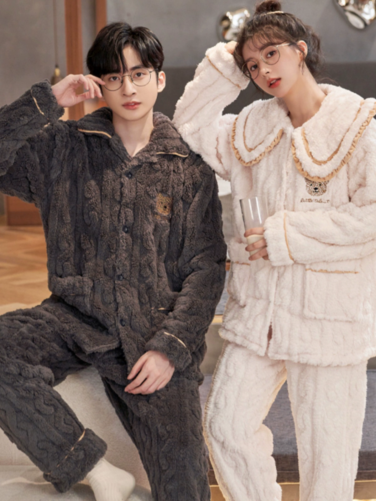 | nameOriginal | Couple pajamas autumn and winter coral velvet men and women thickened velvet flannel velvet cute men's home wear set |