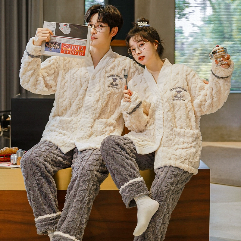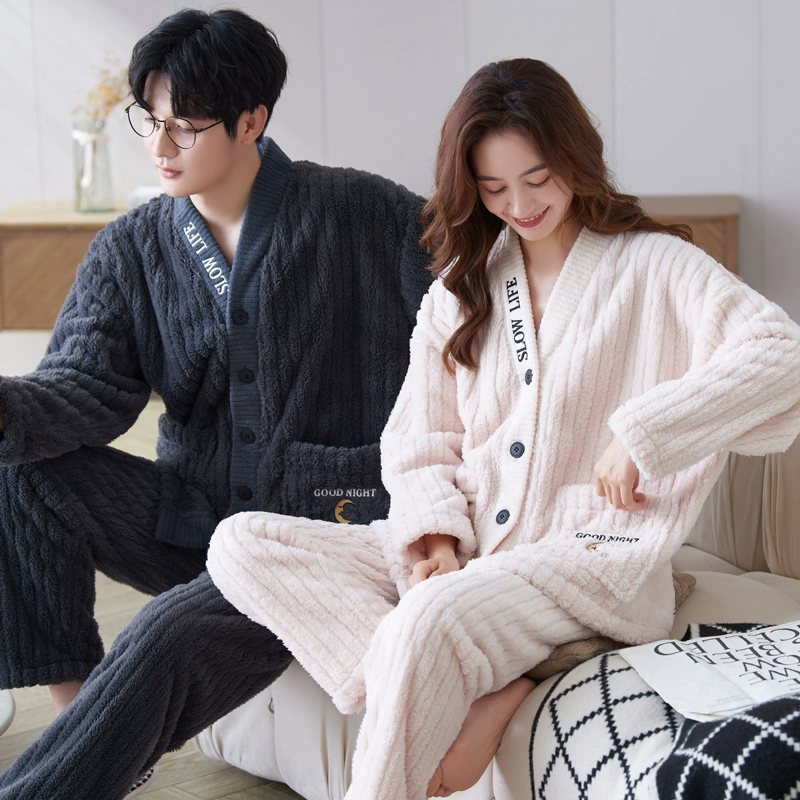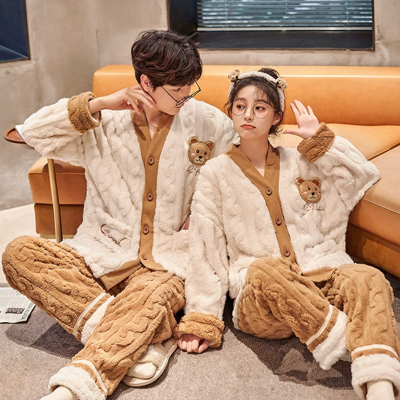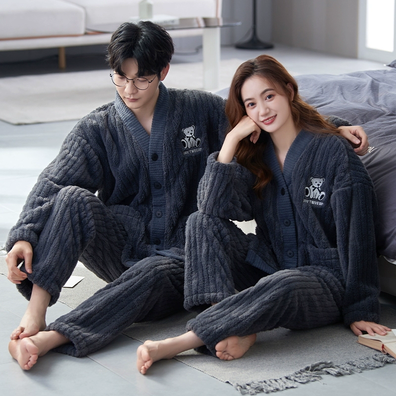 | nameOriginal | Couple pajamas coral velvet autumn and winter cardigan women's men's suit flannel plus velvet thickened kimono home clothes |