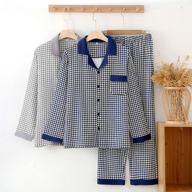 Couple pajamas cotton gauze spring and autumn thin men's long sleeve Japanese simple summer cotton comfortable home wear suit