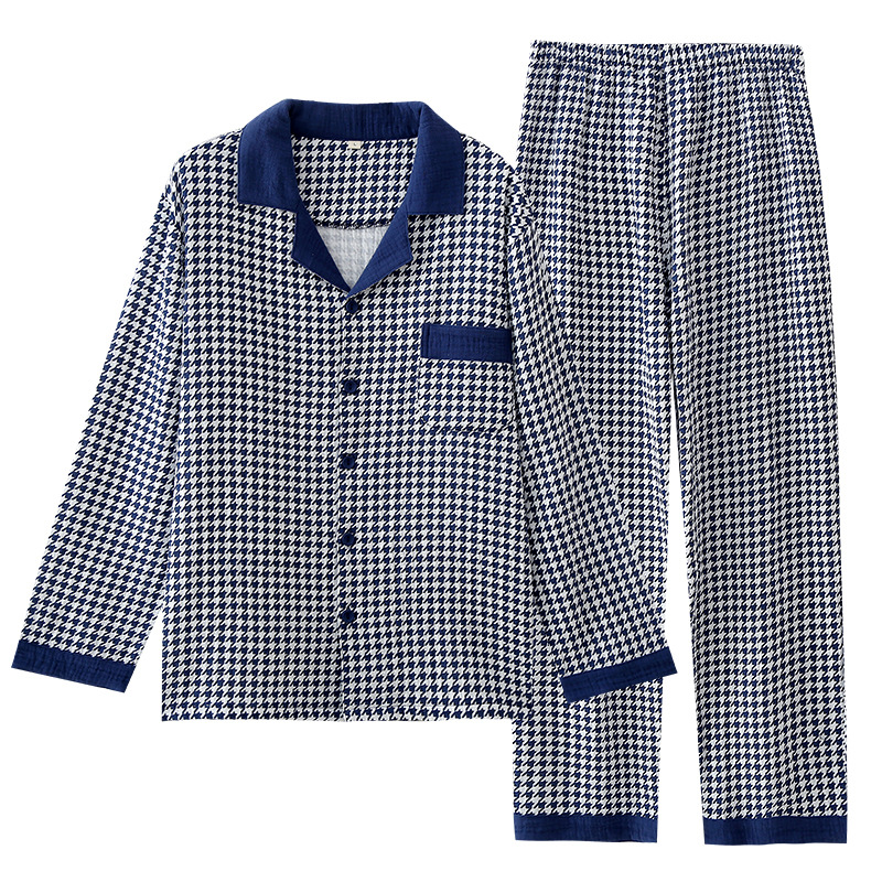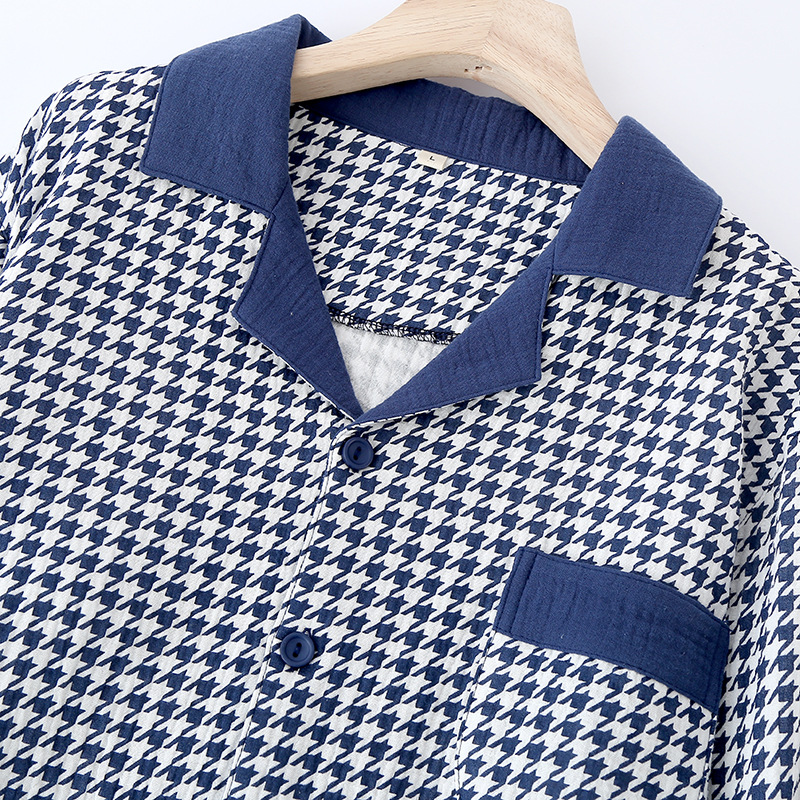 Couple pajamas cotton gauze spring and autumn thin men’s long sleeve Japanese simple summer cotton comfortable home wear suit