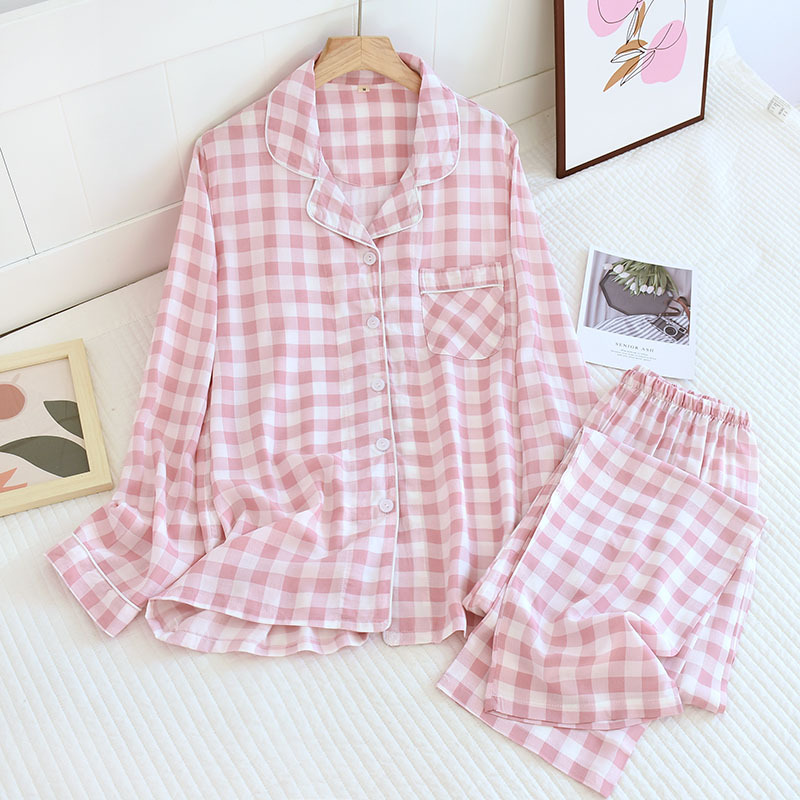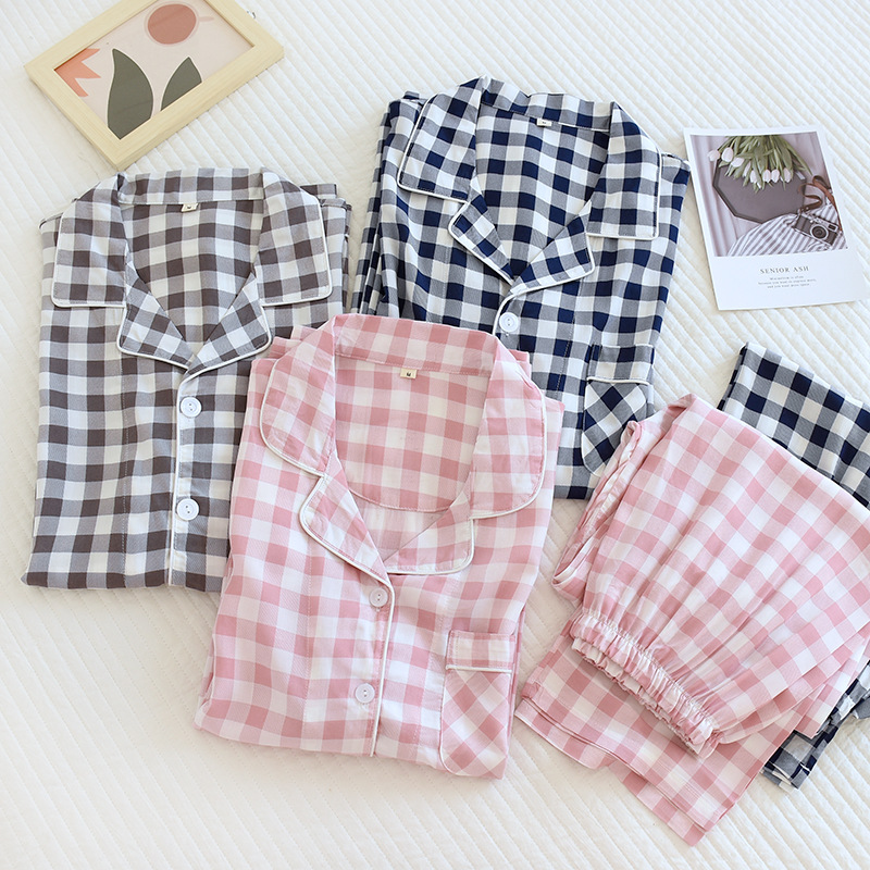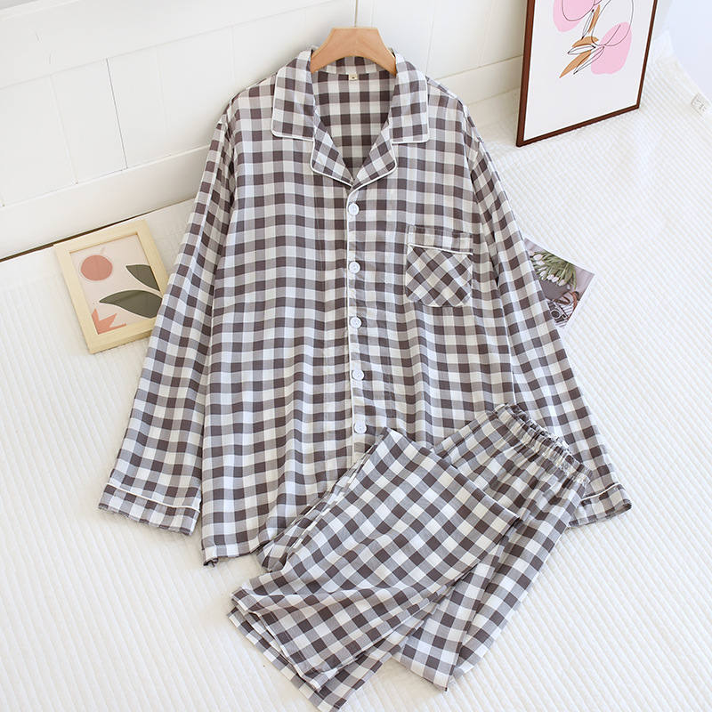 Couple pajamas Spring and Autumn new men's and women's plus size home wear simple style cotton yarn crepe washed double-layer gauze
