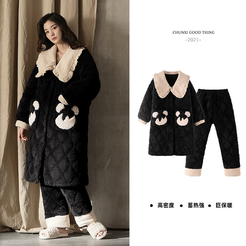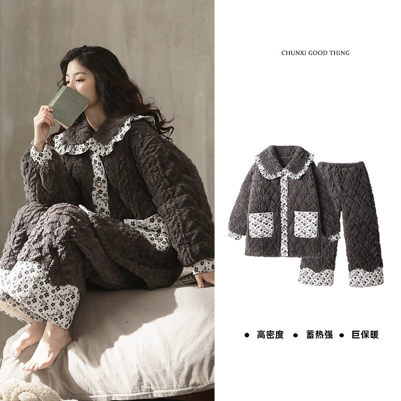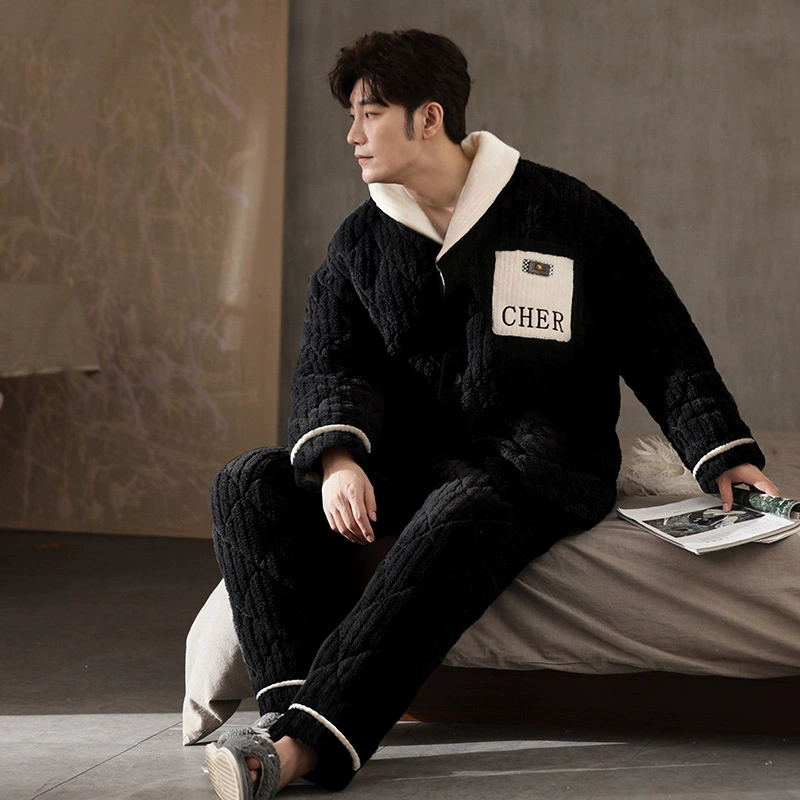 | nameOriginal | Couple pajamas three-layer thickened quilted winter coral velvet plus velvet butterfly print contrasting color extra thick home wear for men |