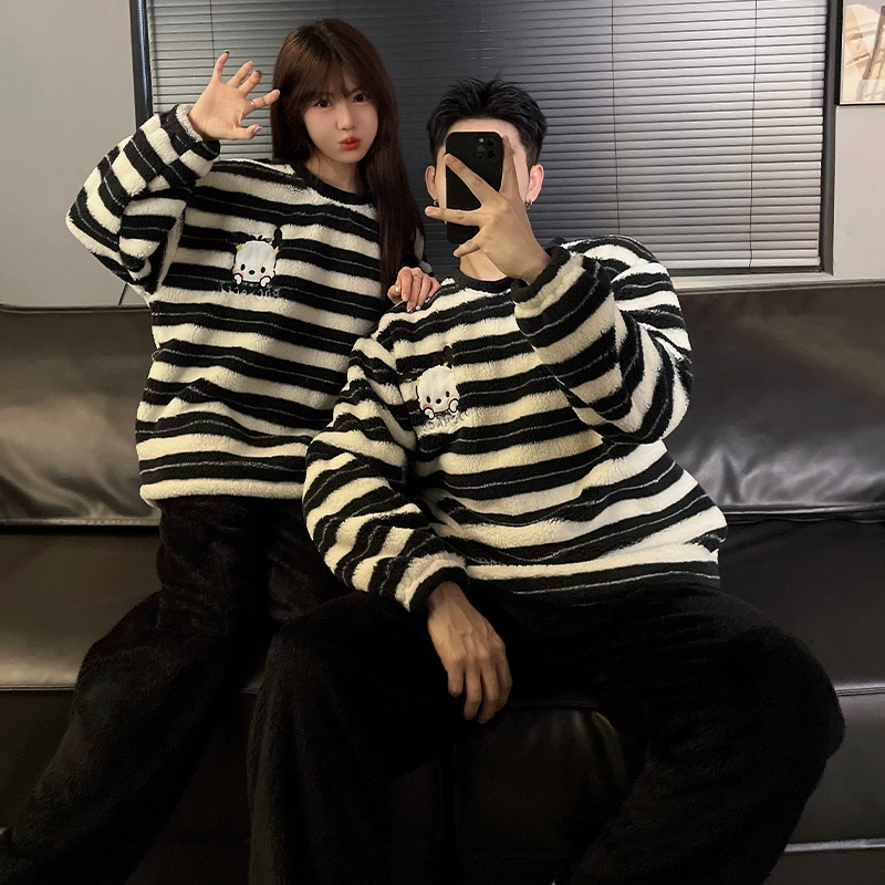 | nameOriginal | Couple pajamas winter coral velvet men's puppy striped plus velvet thickened women's autumn and winter flannel home clothes |
