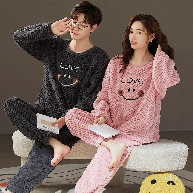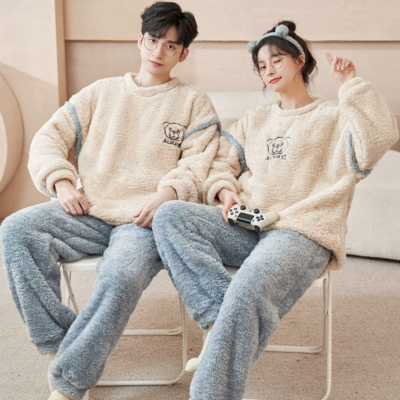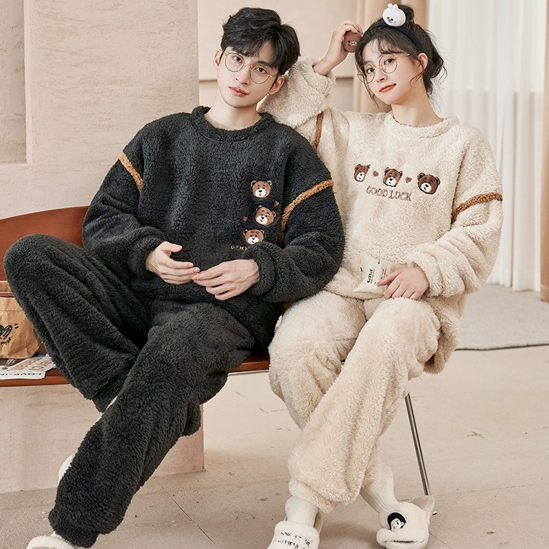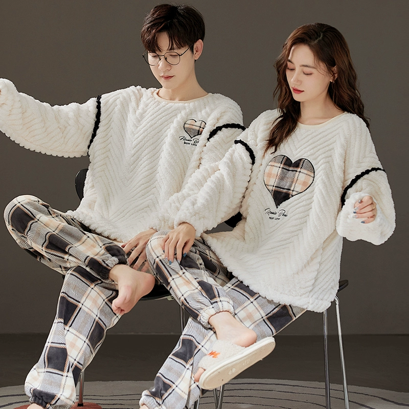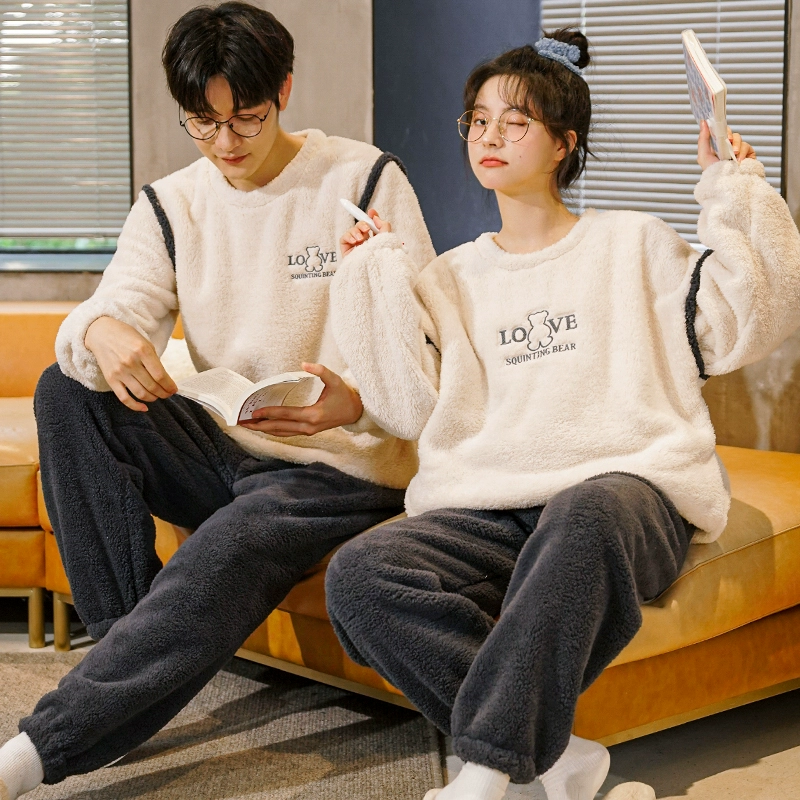 | nameOriginal | Couple pajamas winter coral velvet plus velvet thickened flannel men and women English love home clothes autumn and winter styles |