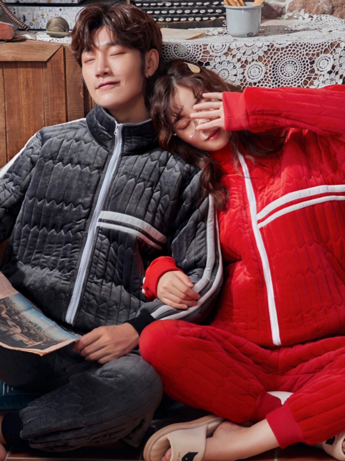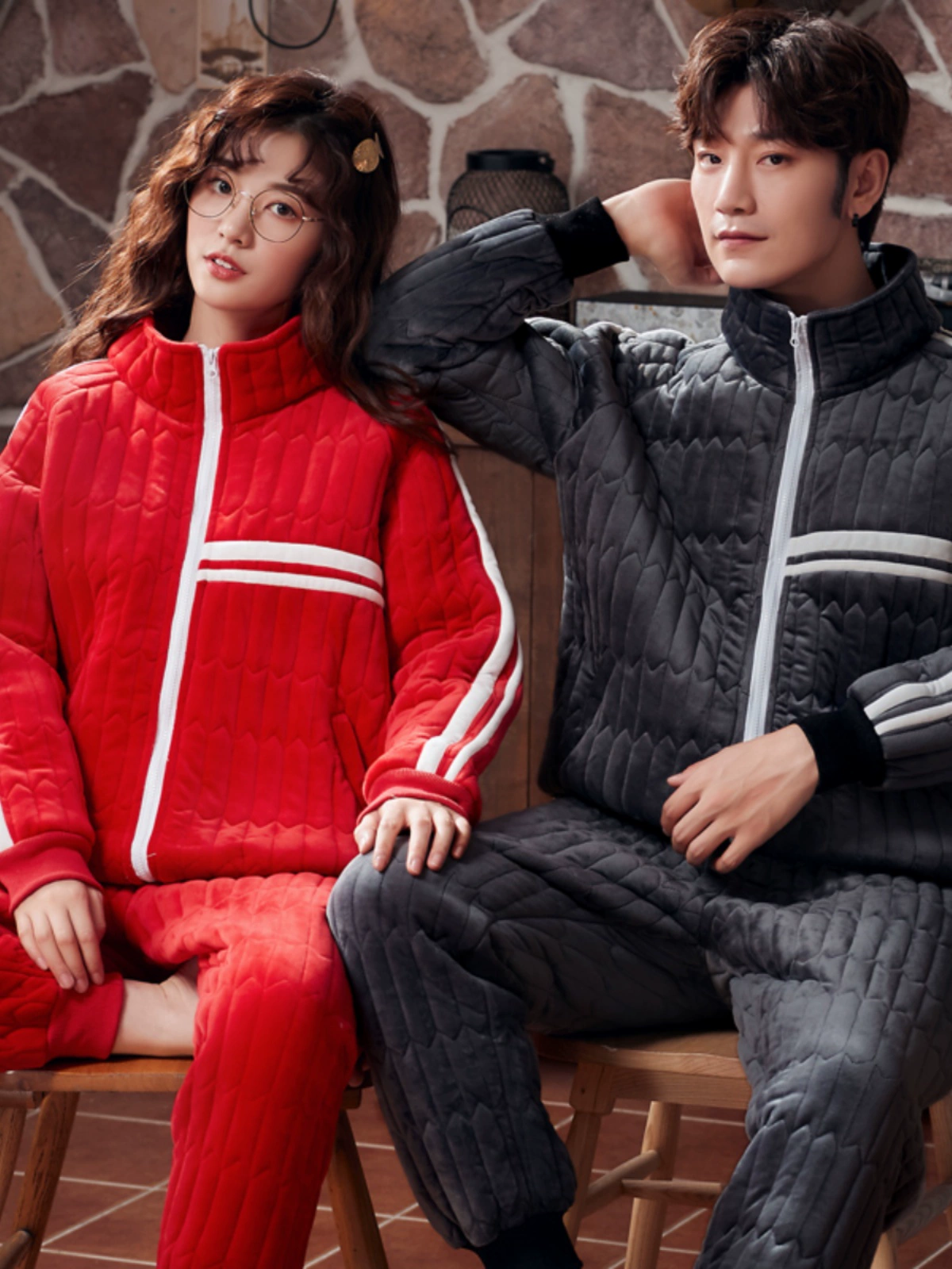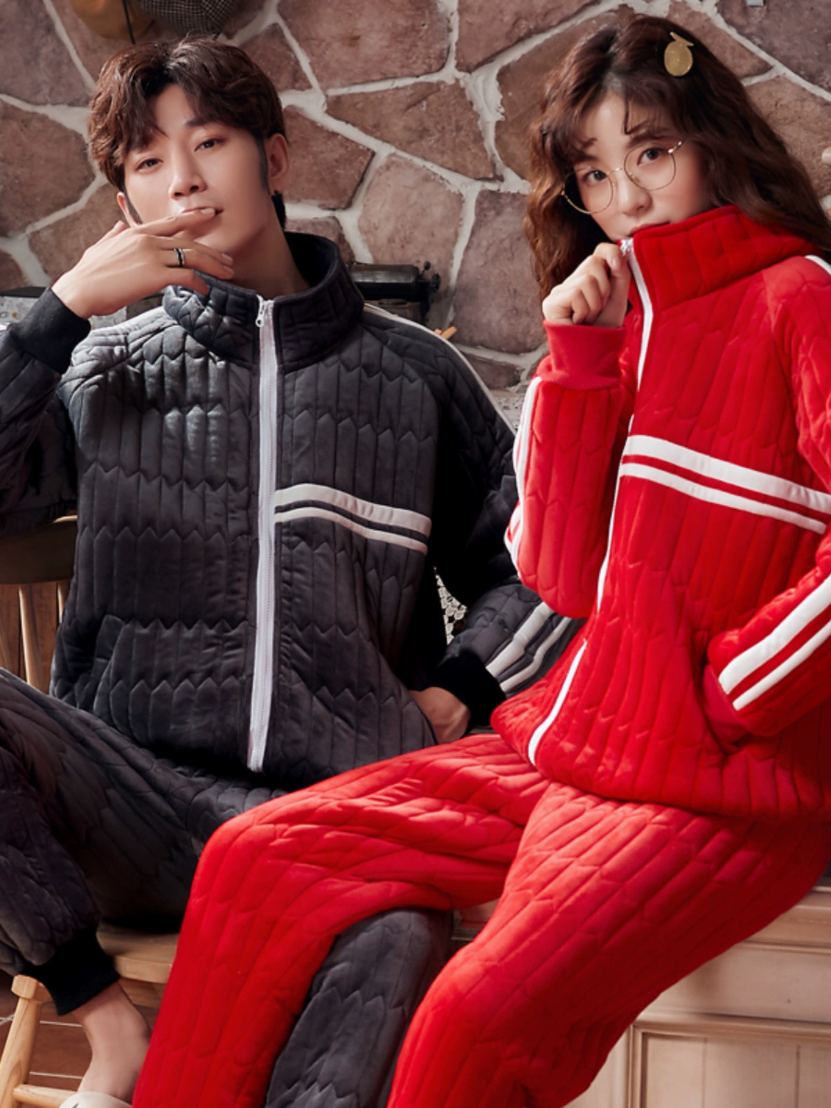 | nameOriginal | Couple pajamas winter women's coral velvet thickened plus velvet men can wear outside winter three-layer quilted home clothes autumn and winter |