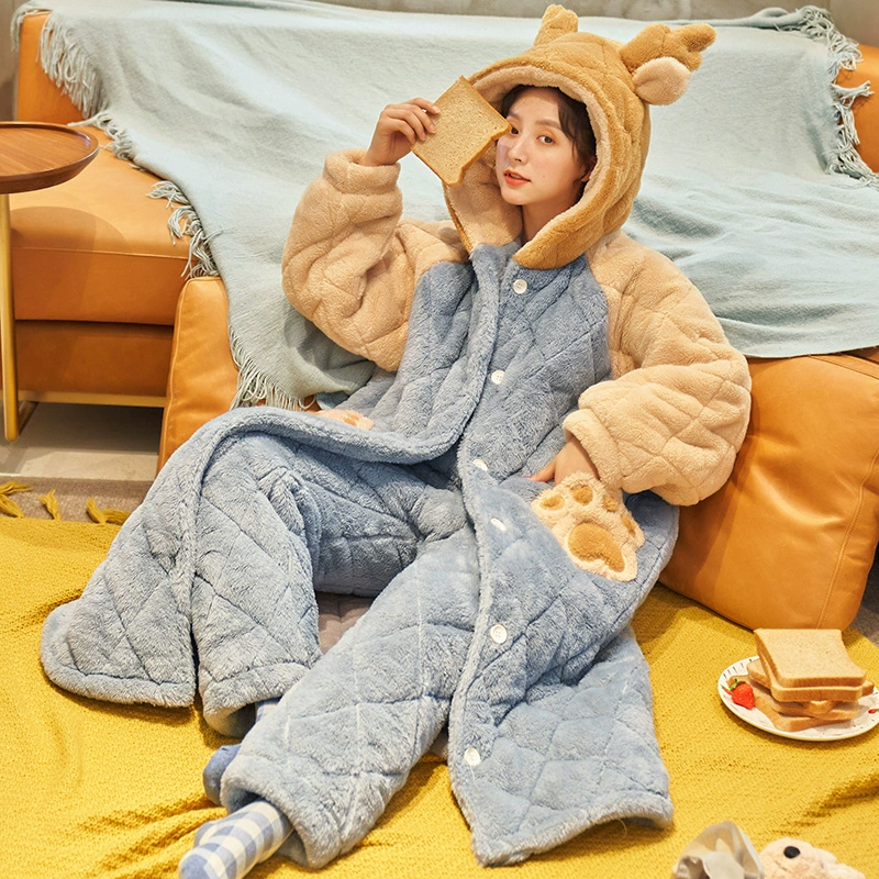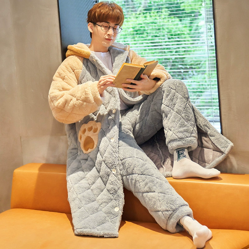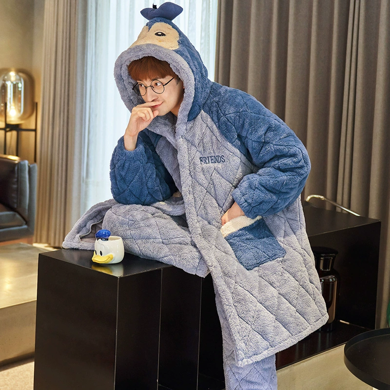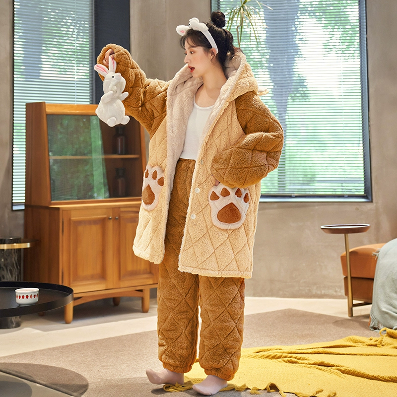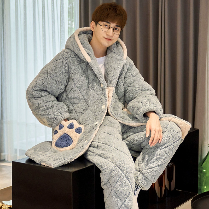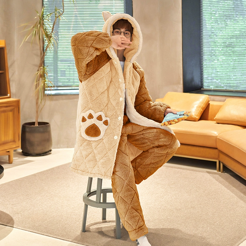 | nameOriginal | Couple pajamas winter women's three-layer quilted plus velvet thickened coral velvet men's flannel home clothes cute set |
