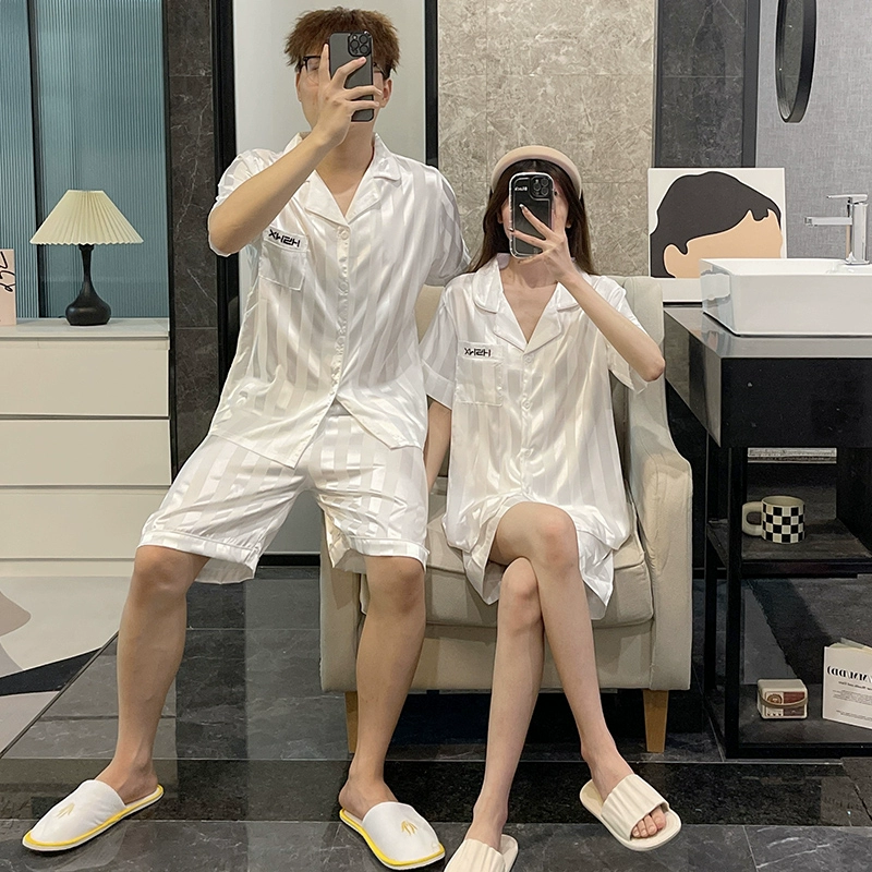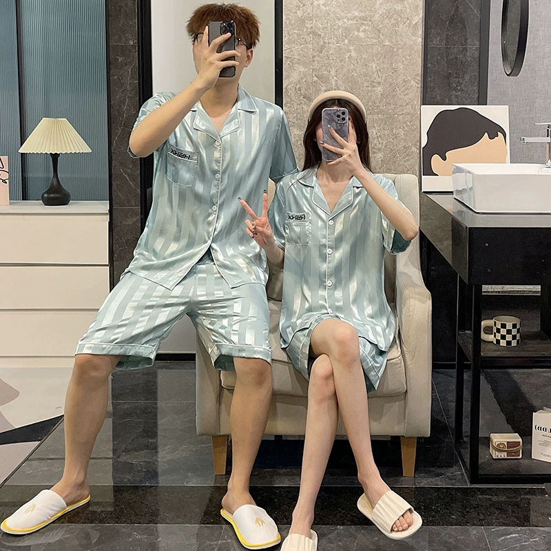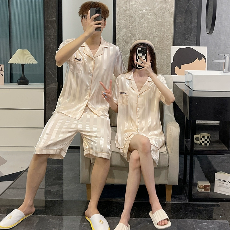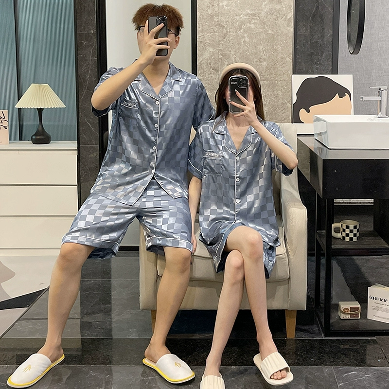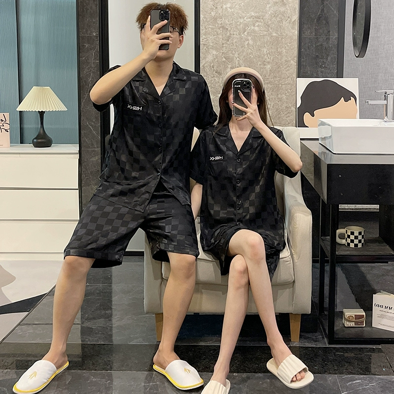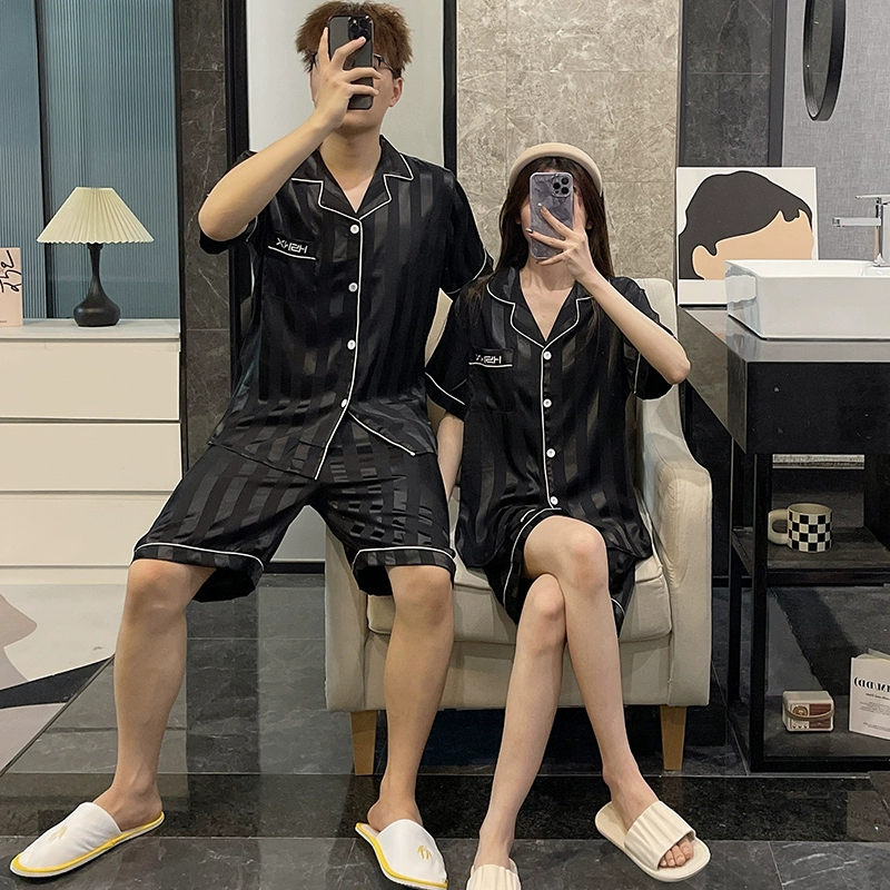 | nameOriginal | Couple Pajamas Women Summer Ice Silk Men's Short Sleeve Thin Silk Large Size 2023 New Black Suit Home Clothes |