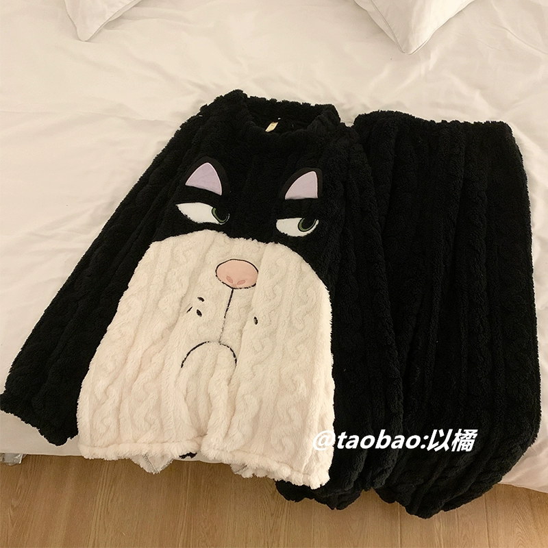 | nameOriginal | Couple Pajamas Women's Autumn and Winter Cute Cat Thickened Coral Velvet Warm and Wearable Men's Home Clothing Set |