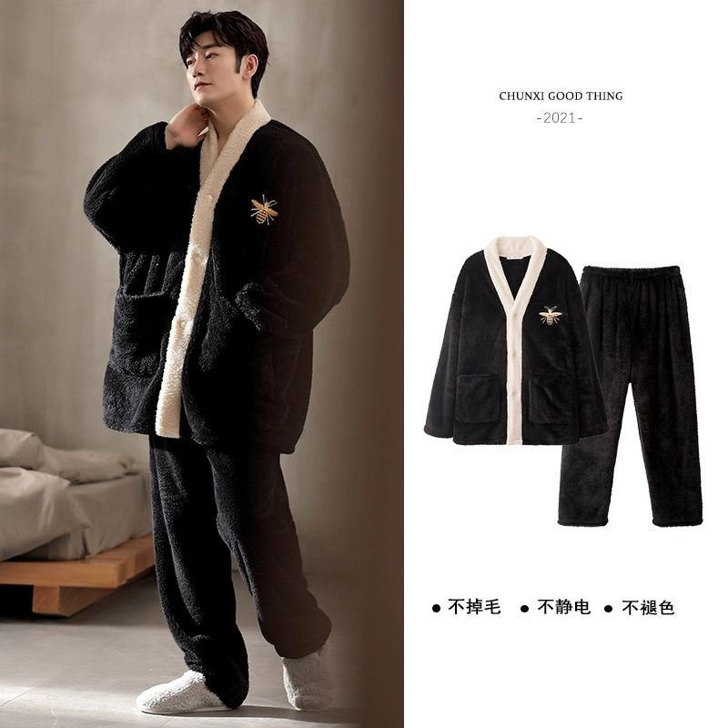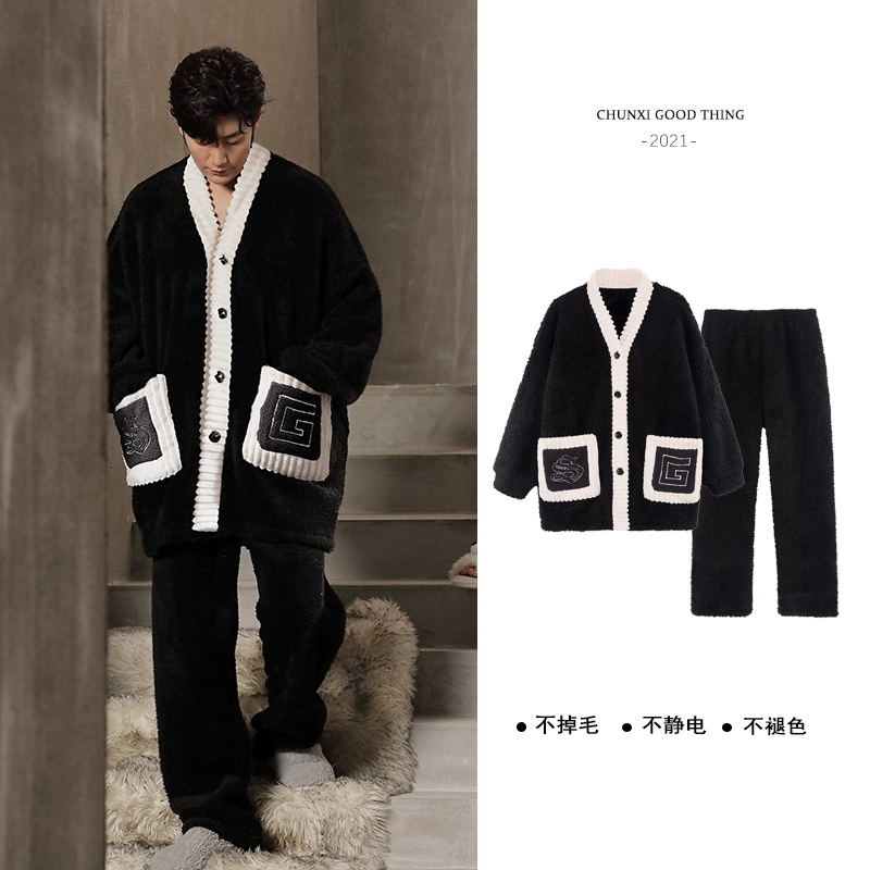 | nameOriginal | Couple Pajamas Women's Coral Velvet Winter 2021 New Thick Velvet Retro Small Fragrance Style Home Clothes Suit for Men |