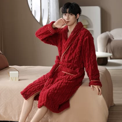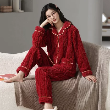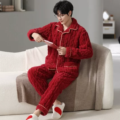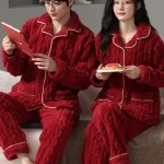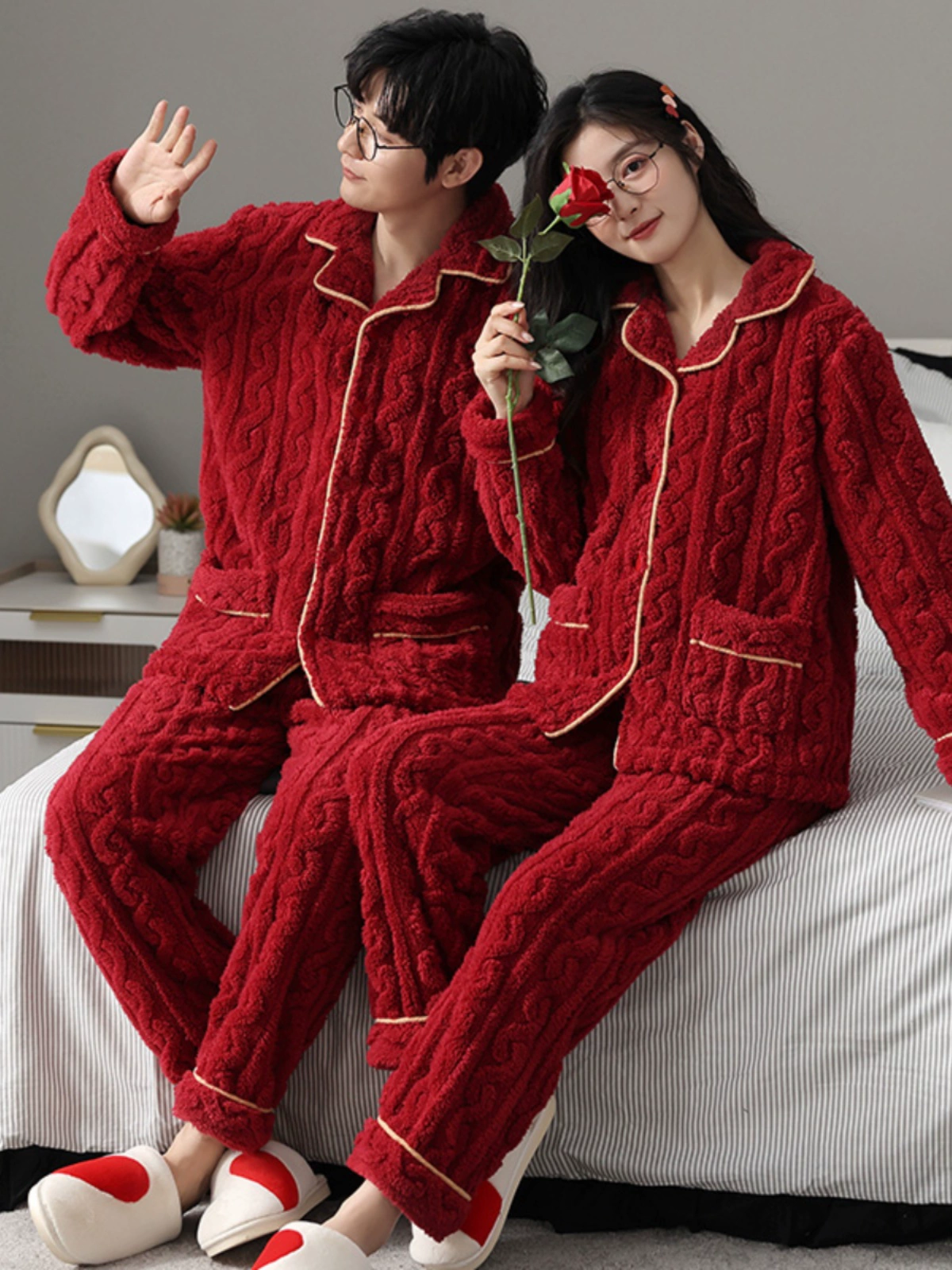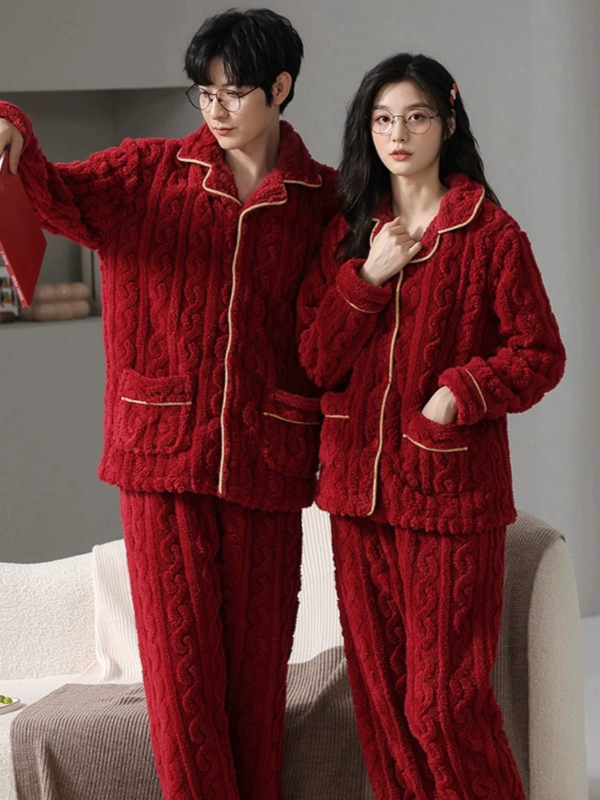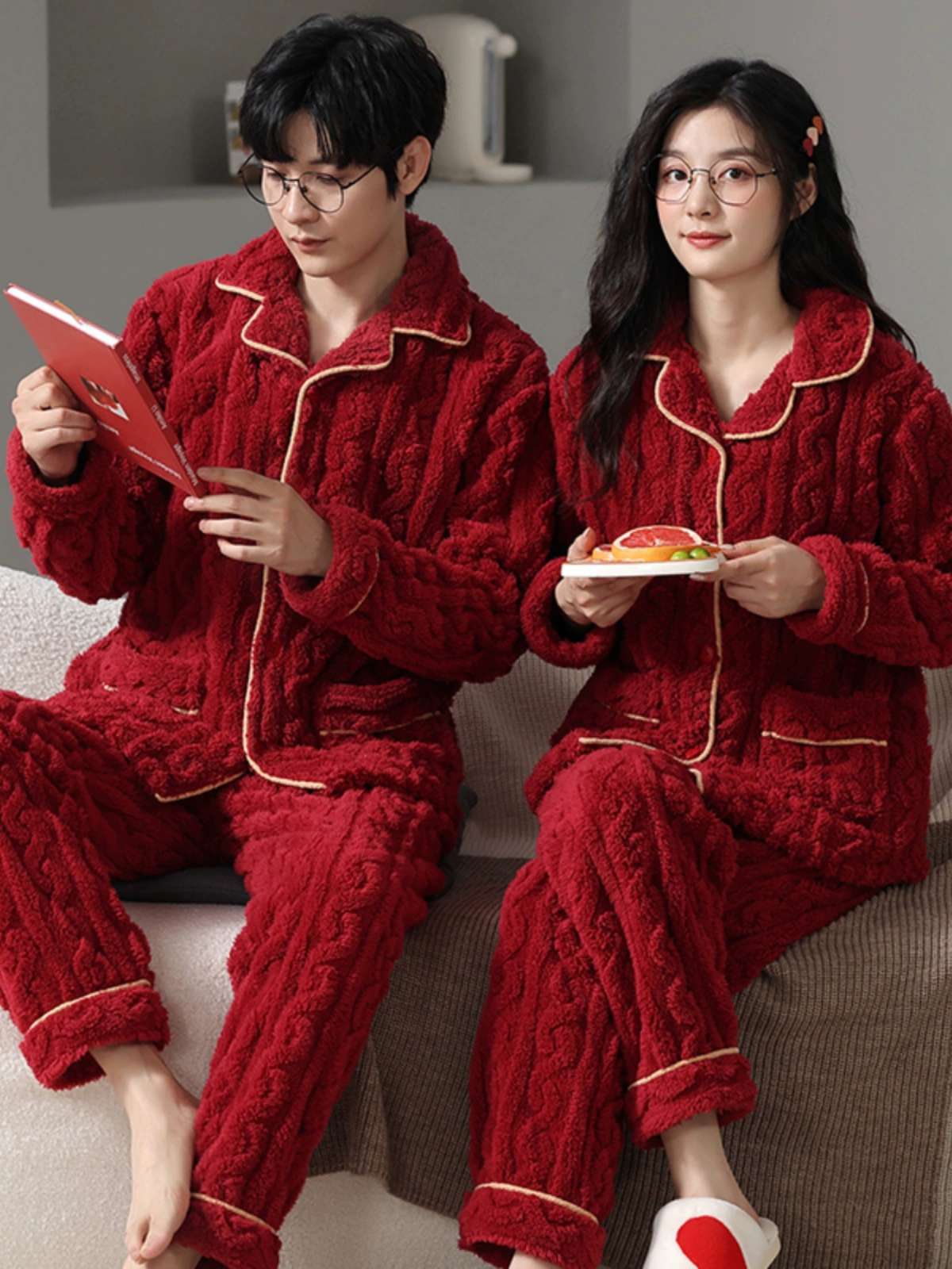 Couple pajamas female velvet thick coral velvet autumn and winter suits men’s winter flange wedding newlywed home service