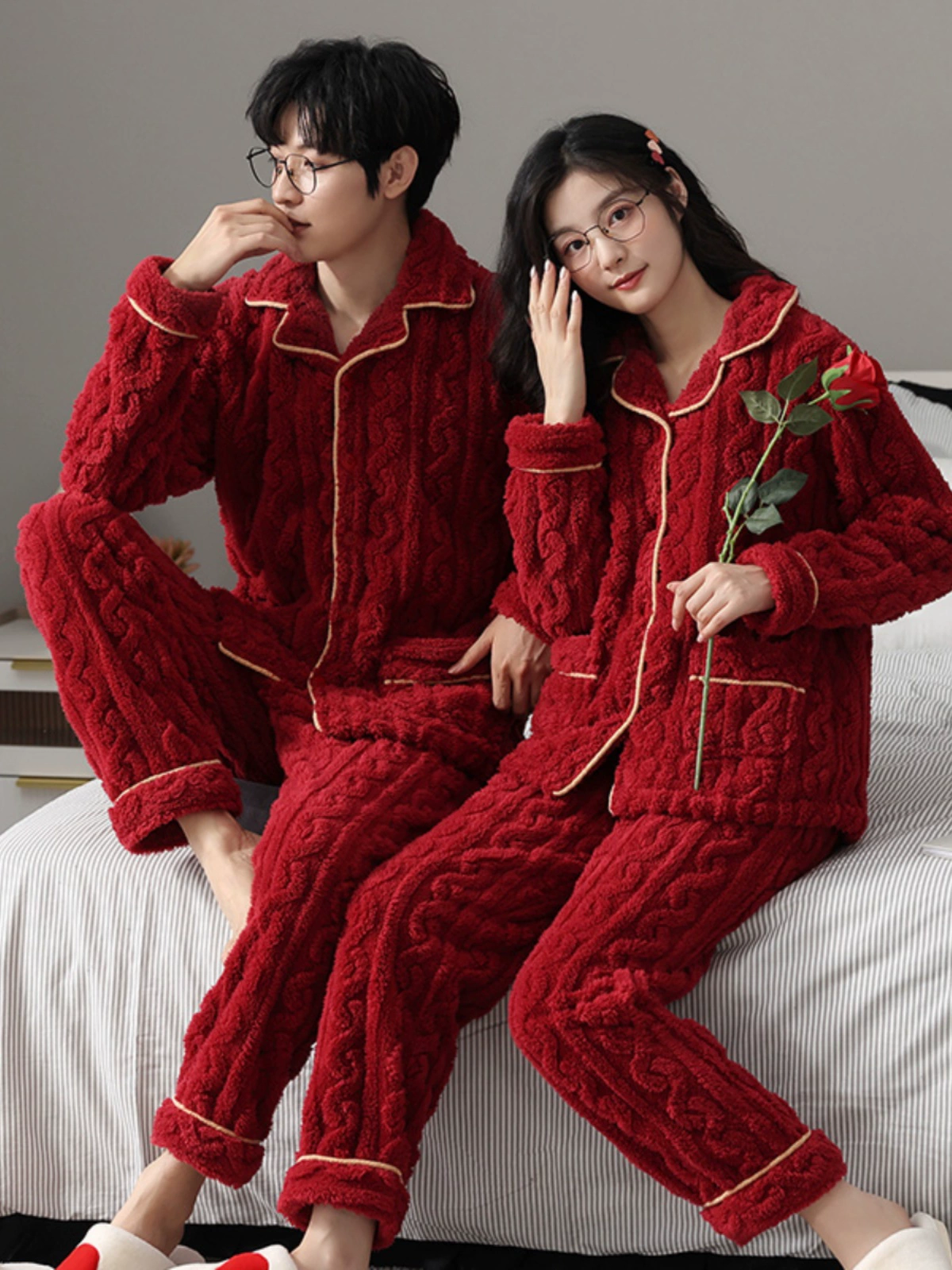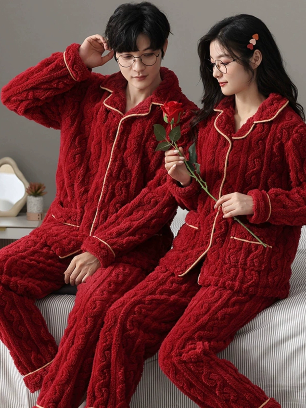 Couple pajamas women's plus velvet thickened coral velvet autumn and winter suits men's winter flannel wedding newlywed home clothes